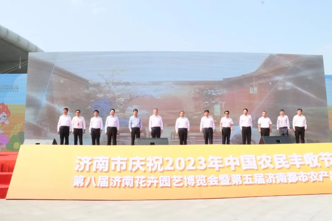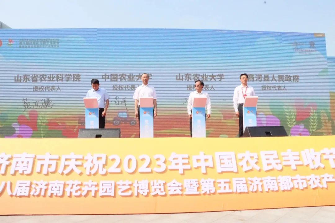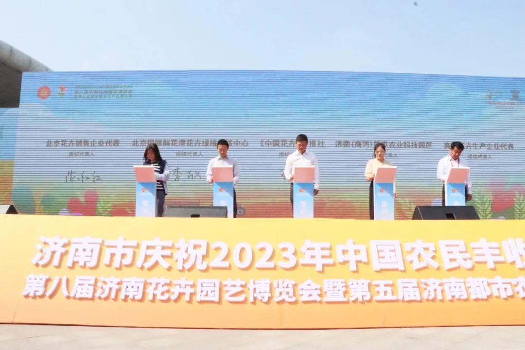 李国祥宣读了省委常委、市委书记刘强,市委副书记、市长于海田的贺信;与会领导分别为“济南市和美乡村”“全市农业农村领域劳动模范”“第二届山东省花镜职业技能竞赛”“第二届山东省插花花艺职业技能竞赛”颁奖;为“国家花卉工程技术研究中心盆花创新中心”“鲁台兰花科技创新联合实验室”“鲁台花卉科技创新实验基地”揭牌;中国农业大学、山东省农科院、山东农业大学与我县签订战略合作框架协议,企业代表签约“商河花卉 扮靓京城”商河花卉直通京城项目。