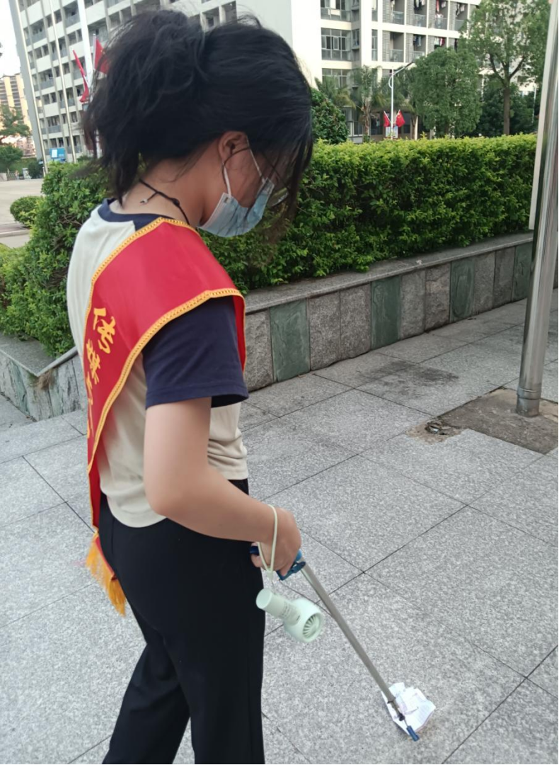 同时负责清新校园的志愿者们对校园绿化带、食堂、宿舍楼周边的塑料袋、烟头、纸屑、烟头、杂草枯枝等垃圾进行了捡拾和清扫。经过1个小时的劳动,所负责区域内的垃圾得到了有效清理,校园环境在志愿者的共同努力下变得更加整洁,更加美丽。