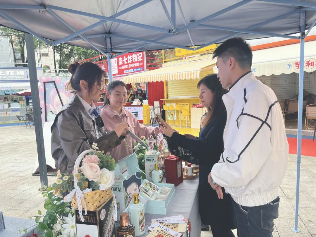 我公司工作人员积极地向大家介绍i茅台和巽风数字世界的最新玩法,促进过往行人对茅台数字科技创新的深度了解。同时,为在现场成功打卡并分享朋友圈的“准茅粉”们赠送美味的茅台冰淇淋、茅台玩偶、国潮酒具、柿柿如意等茅台特色礼品,进一步提升消费者对i茅台和巽风数字世界的了解度和认识度,进而提升i下载量及使用量。