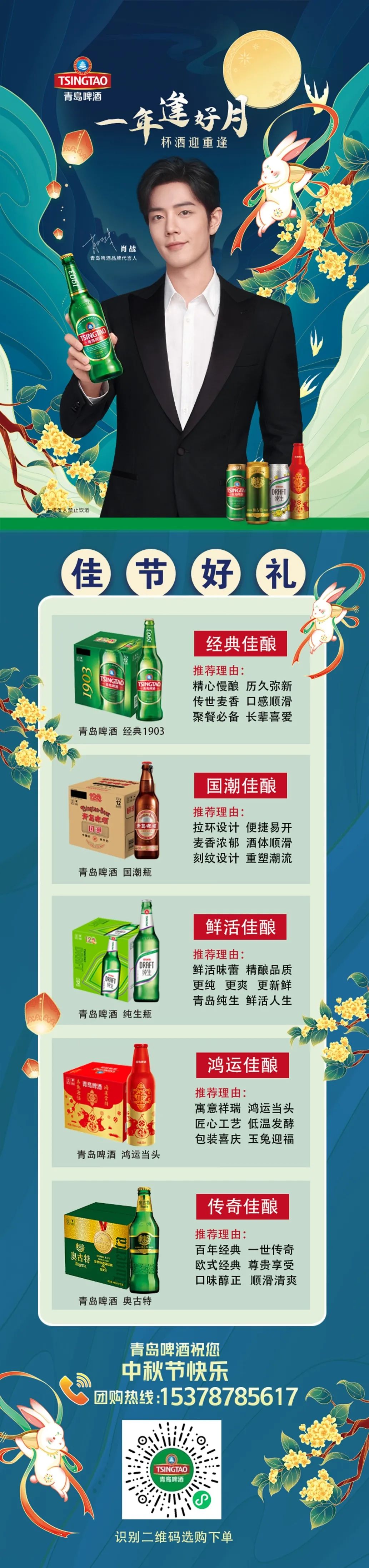 青岛啤酒祝全省消费者中秋节和国庆节快乐!阖家幸福美满!