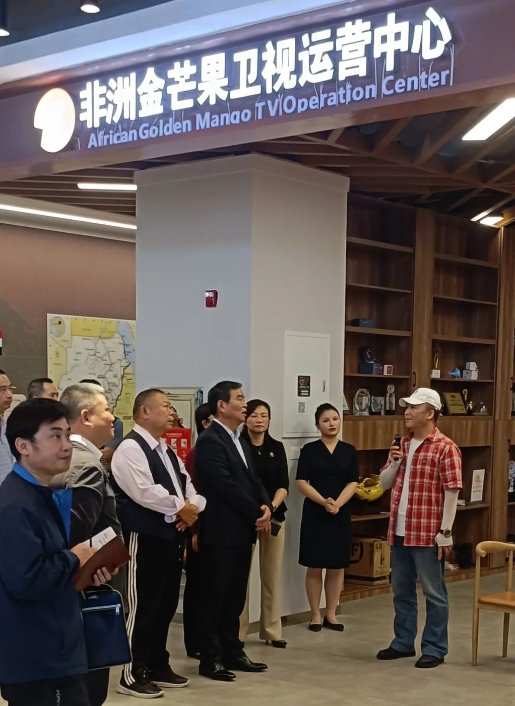 9月25日,何报翔一行来到中非经贸合作促进创新示范园考察,详细了解对非标准认证合作、对非进出口贸易、中非经贸合作平台打造等情况。当来到中非经贸博览会常设馆非洲金芒果卫视运营中心时,何报翔副主席就非洲金芒果卫视的运营情况、覆盖范围、节目设置、播出语种以及湖南广播电视台国际频道和非洲加纳黄金数字电视台的合作模式进行了深入的了解,非洲金芒果卫视节目总监浚峰进行了一一回答并做了全面介绍。何报翔对湖南广播电视台国际频道与非洲加纳黄金数字电视台这种合作模式给予了充分肯定和高度评价,并嘱咐非洲金芒果卫视做好中非经贸的宣传和搭建好中非经贸的国际桥梁。