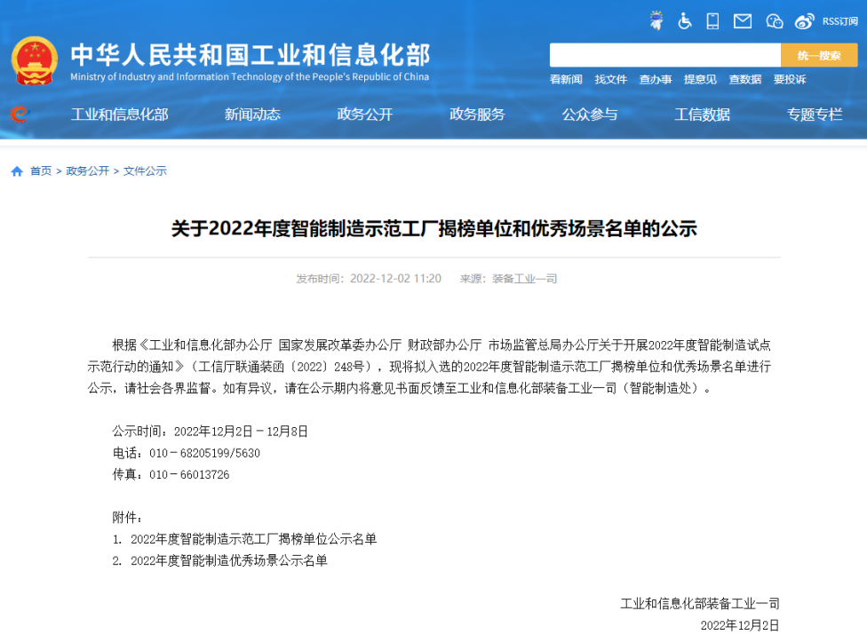 近日,德阳应和机械制造有限责任公司入选“2022年度国家智能制造优秀场景” ,国家工信部根据《工业和信息化部办公厅 国家发展改革委办公厅 财政部办公厅 市场监管总局办公厅关于开展2022年度智能制造试点示范行动的通知》(工信厅联通装函〔2022〕248号),将拟入选的2022年度智能制造示范工厂揭榜单位和优秀场景名单进行公示。