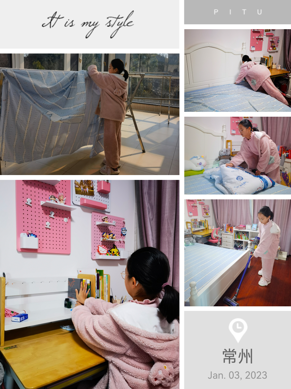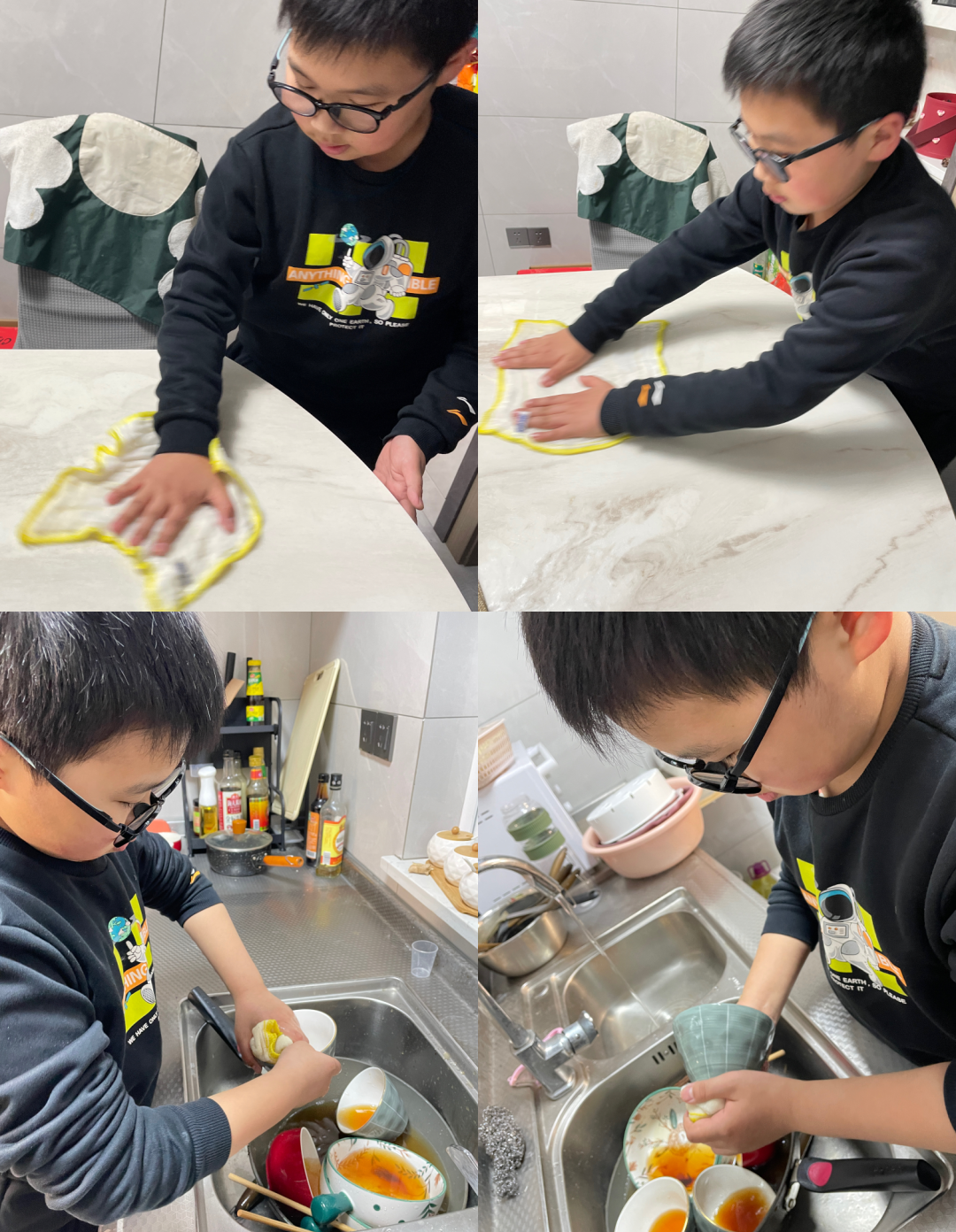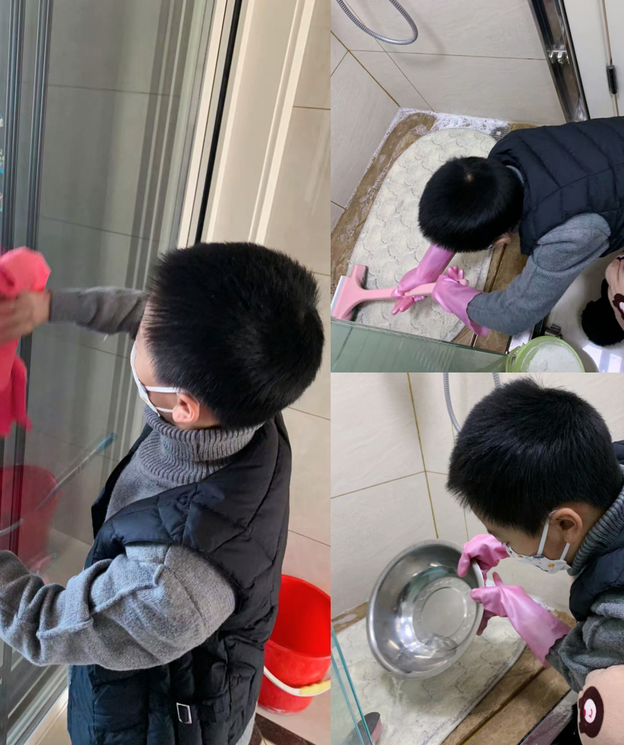 家务劳动做起来啦!有的同学拿起笤帚拖把,打扫家里的角角落落;有的撸起袖子,刷洗鞋子;还有的同学化身“家庭厨师”,起锅烧油,翻炒装盘,给家人送上一道道佳肴;也有同学收拾桌面,叠好床铺,将自己的小天地整理得干干净净。