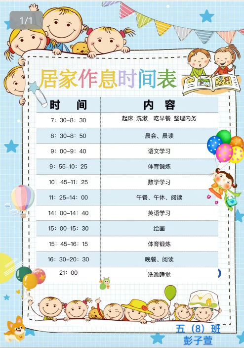 自己的生活自己决定,自己的事情自己做,自己制订一张快乐的自主学习时间安排表