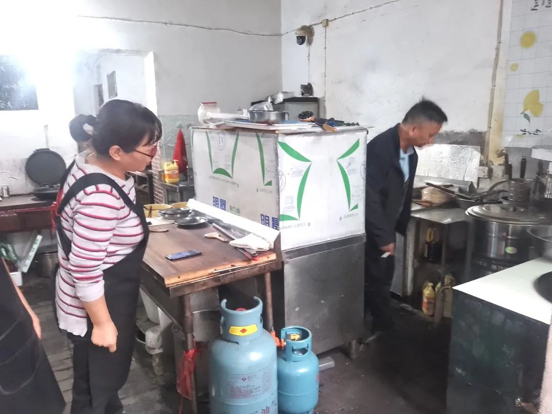 检查过程中,工作人员对餐饮行业燃气厨房进行大排查,对有安全隐患的用户第一时间进行上报,下发整改通知书,及时消除燃气安全隐患,引导居民提高安全用气意识,守牢燃气安全底线。重点检查各用气场所是否安装燃气报警装置,是否违规使用非法营运的液化气瓶,气瓶存放场所是否安全,燃气连接管、减压阀等燃气设备是否存在破损、老化等,确保安全检查全覆盖、无死角、无遗漏。对检查发现的安全隐患问题进行现场指导,并建立隐患台账清单,做到逐一销号管理。同时,发挥网格员作用,向村组微信群、商户群转发燃气安全使用常识、处置燃气突发事故的应急措施和方法,加强宣传引导,真正做到防患于未“燃”。