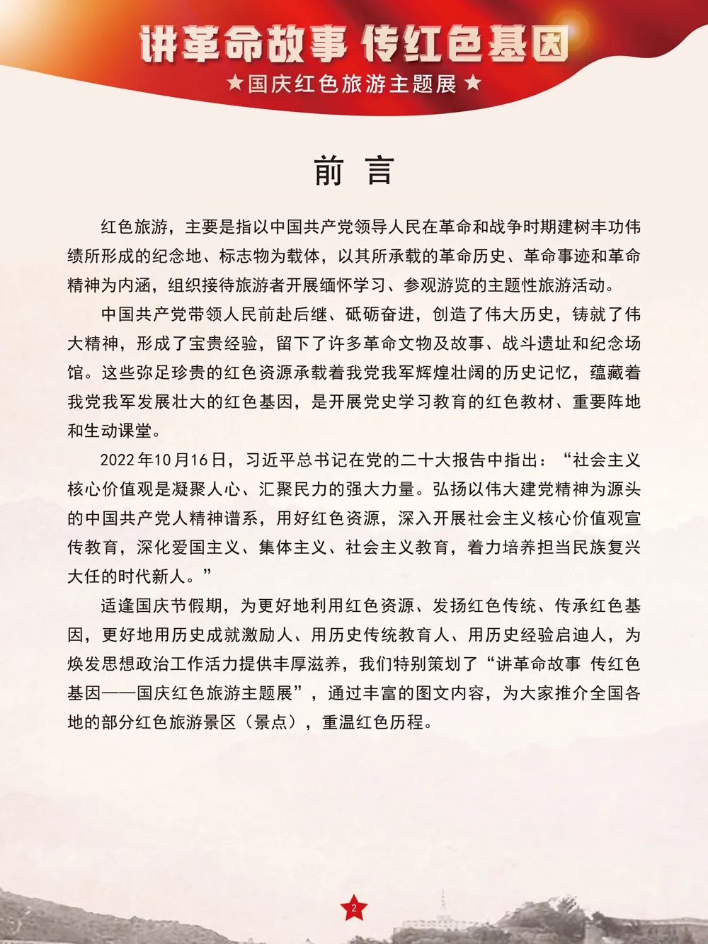 ↙点击下方蓝色“阅读原文”观看“讲革命故事 传红色基因——国庆红色旅游主题展” 微信端全景展