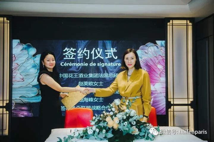 在众嘉宾的见证下,花王酒业与法曼尼国际酒业举行了合作签约仪式,助力花王酒业白酒产品在法国市场推广。中国花王酒业集团「中国花王,全球起航」预示着全面进军法国市场,欧洲市场。