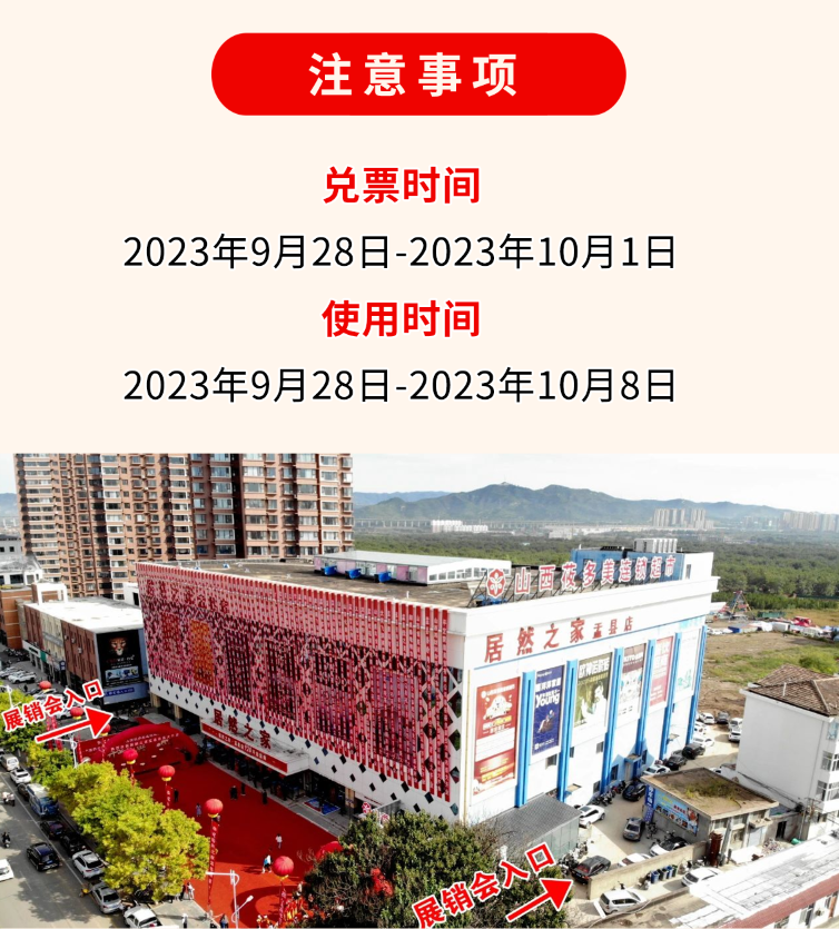 上图为展销会西入口:藏山北路居然之家盂县店商场两侧