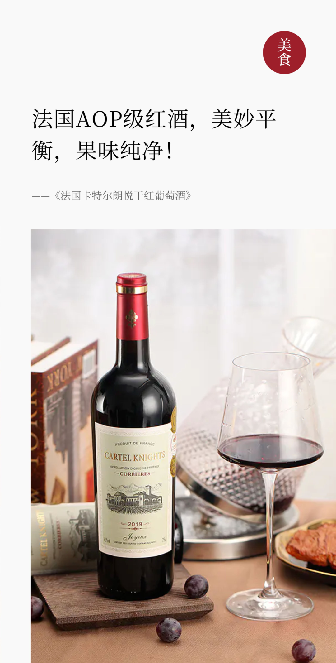 如果你是一位葡萄酒爱好者,那你一定知道法国南部一个叫做“科比埃Corbières”的葡萄产区,这里出了许多世界名酒,很多酒款被拍出天价!AOP即Appellation d"Origine Protégée,指原产地法定产区葡萄酒(中文简称为法定产区餐酒),是法国葡萄酒的zui高级别。大部分科比埃葡萄酒在法国就消耗掉了,出口到中国的好酒不多,尤其是AOP级别的,更是一瓶难求。今天,给大家带来的这款酒正是来自科比埃Corbières产区的卡特尔朗悦干红葡萄酒。如假包换的【法国原瓶原装进口】,品牌方还提供了原产地证书。因为恰逢海关清仓,这批酒迎来了史低价!仅1000箱,到岸直售!官方价2988元/瓶,现在清仓价2箱共8瓶仅售199元!而且还配有精致的油画风礼盒,高端大气,送好友送商务或者待客都倍有面儿,爱酒的朋友喝到定会倍加欢喜。1926年,Victorin Aubert在法国南部的朗格多克——科比埃产区建立了卡特尔庄园。经过几代人的努力,不断的开荒,使得庄园达到了150公顷。慷慨的大自然赋予了这片神赐之地干爽且阳光充足的地中海气候、肥沃与多样化的土地。要知道,在许多葡萄酒专业级“尝家”心中,科比埃的地位并不比波尔多低。60年以上的老藤葡萄树,深根品质、产量以及糖分含量等都足够稳定。使用传统手工采摘,保证果实的完整性,一颗颗筛检,压榨并分离。再经过长达18个月橡木桶陈酿,最后才出这么一瓶,这款红酒可以说是酒庄的得意之作!三大明星葡萄品种混酿:歌海娜、神索、西拉,在三种葡萄支撑下,酒体浓郁而结构感十足,既浑厚优雅又有舒畅的复杂度,使得酒体厚重。稀有14.5°的黄金度数,酸度新鲜,明亮的宝石红色调,酒体颜色深邃,饱满有力。 越喝越舒服,越有层次感。喝到嘴里,第一感觉就是“飘”,酒水在唇舌之间灵动辗转,迸发出令人惊艳的黑醋栗甜酒、铅笔屑、新鲜烟草及冷冽的矿物质香气。美妙平衡,果味纯净,口感层次丰富、绵密紧凑,余味又很悠长,难怪拿过吉尔伯特葡萄酒指南金奖。入口单宁圆润丝滑,有浓郁的果香味,一点不压舌,也不冲口,是少有的质感存在。有了这样的好酒在手,配一份美味的牛排或海鲜大餐享用,口感不要太美妙。又或者是在一个夜晚找一部你喜欢的电影,一个人一杯红酒,身心舒缓,好不自在!一天的坏情绪消失得荡然无存。尤其是节日之时,情人节、约会时、家人团聚时、好友聚会时,借着一瓶葡萄酒来庆祝爱情友情亲情,氛围感超浓!一箱4瓶,相当于是买一箱送一箱,性价比惊人!而且下单还赠送2个海马刀+2个倒酒器~无论是畅饮还是赠礼,它都是不二之选。慢慢品尝,悠悠岁月也染上愉悦的酒香~