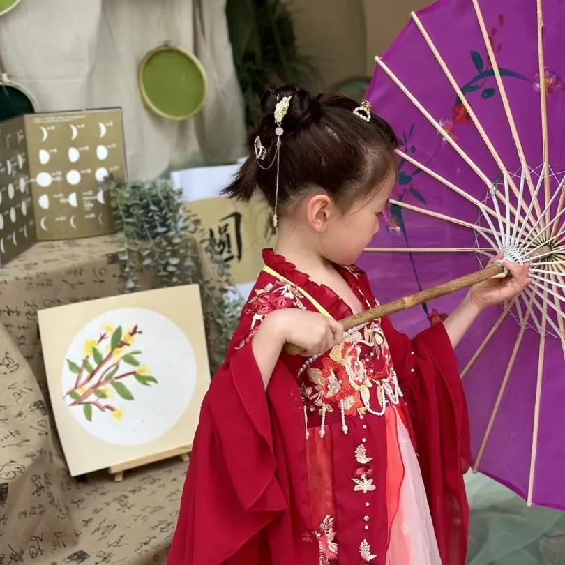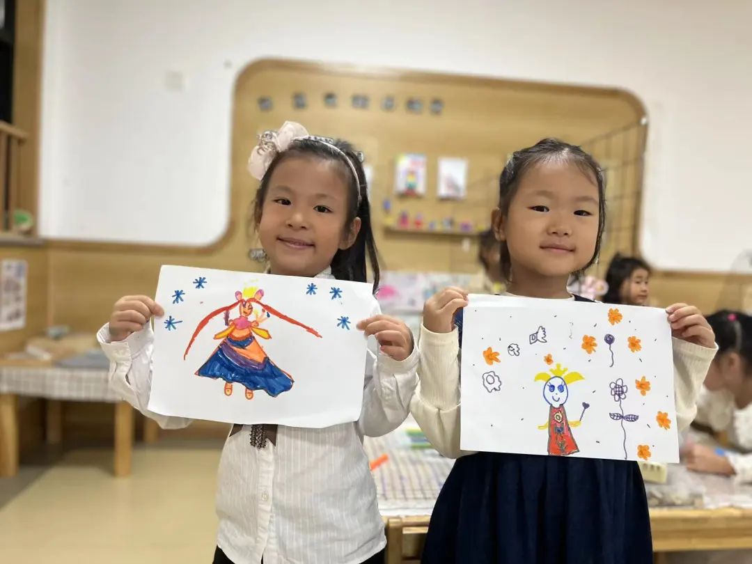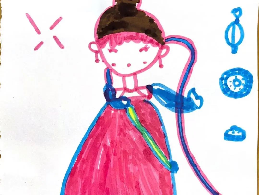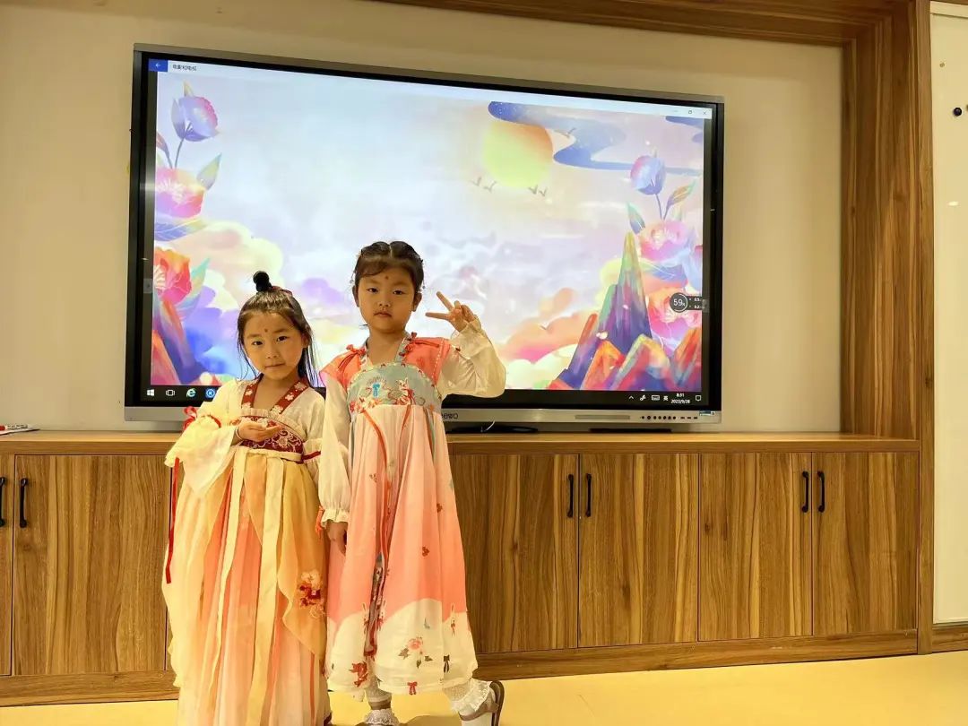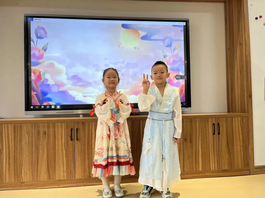 “老师,你知道什么是汉服吗?“”老师,月饼礼盒上就有穿着汉服的人?”“汉服好漂亮”,带着疑惑,孩子们一起查阅有关汉服的知识,尝试设计属于自己的专属汉服。