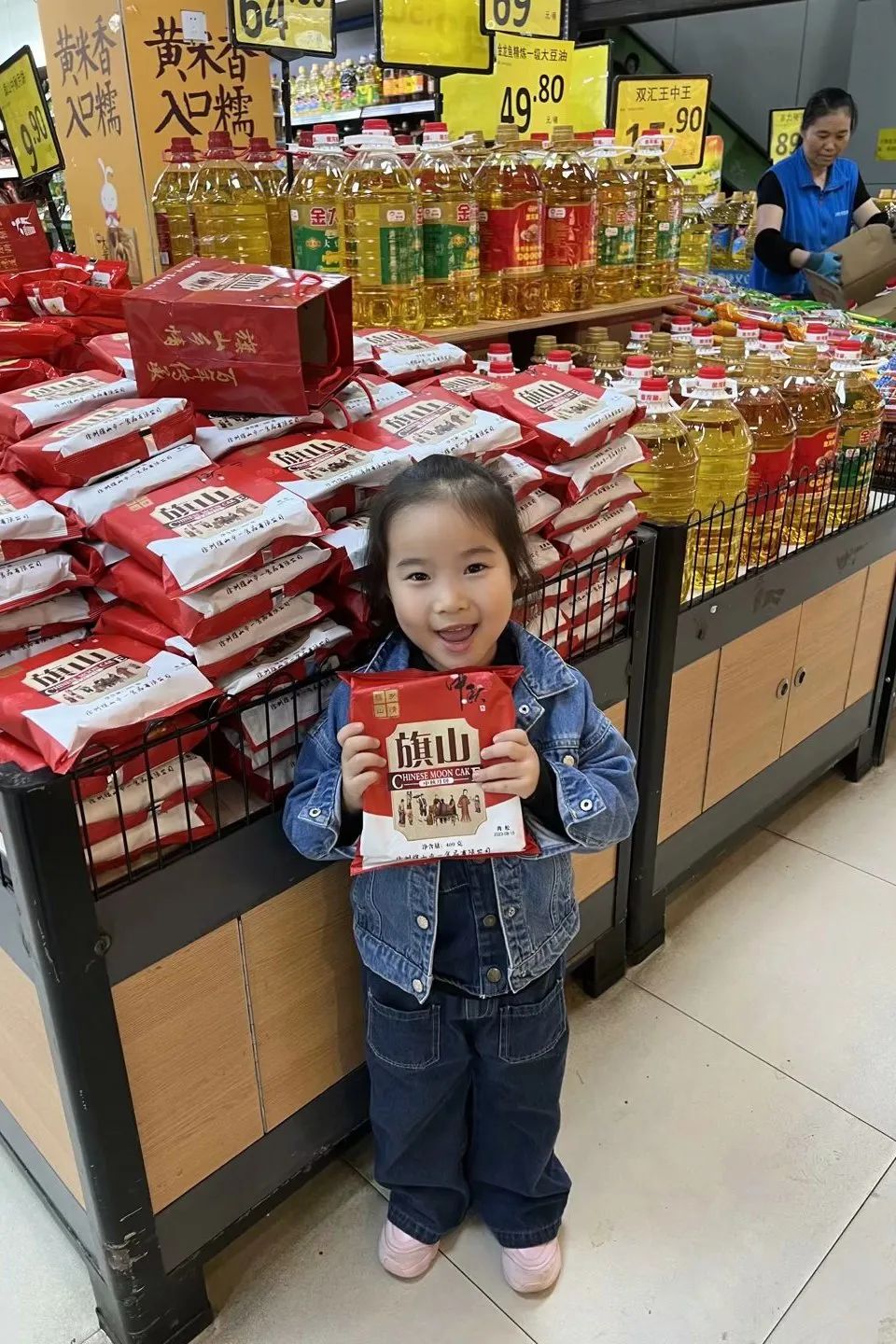 我妈妈带我去的超市里有好多月饼。