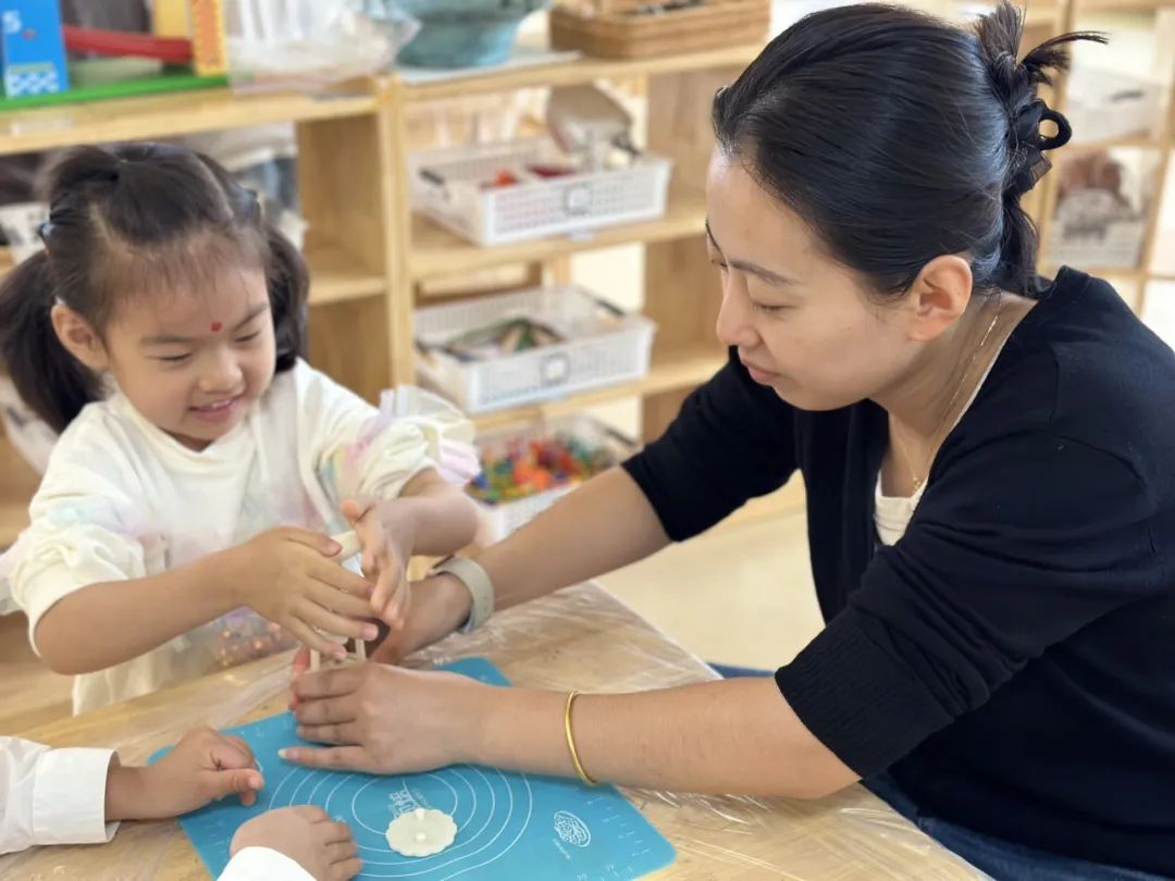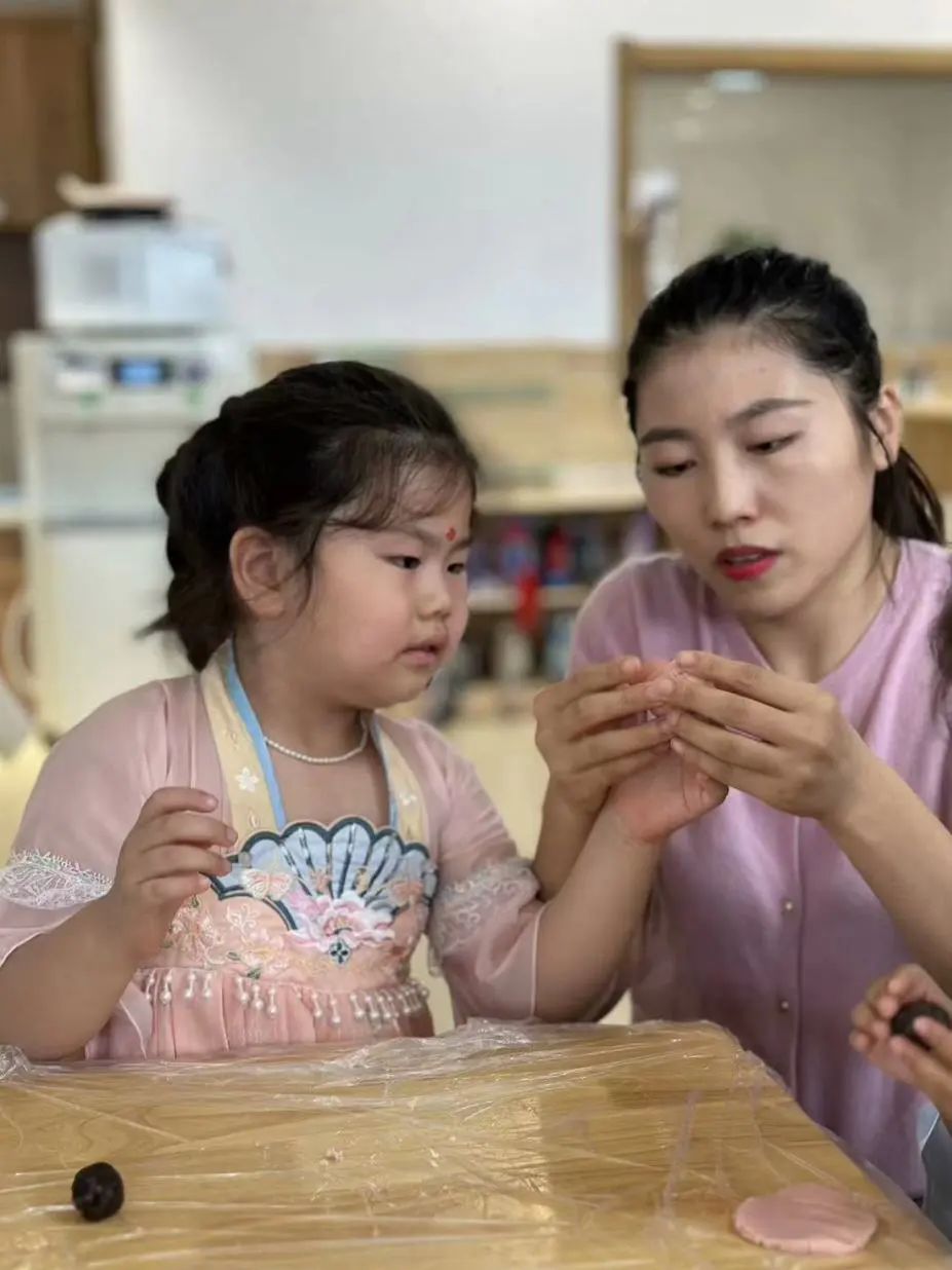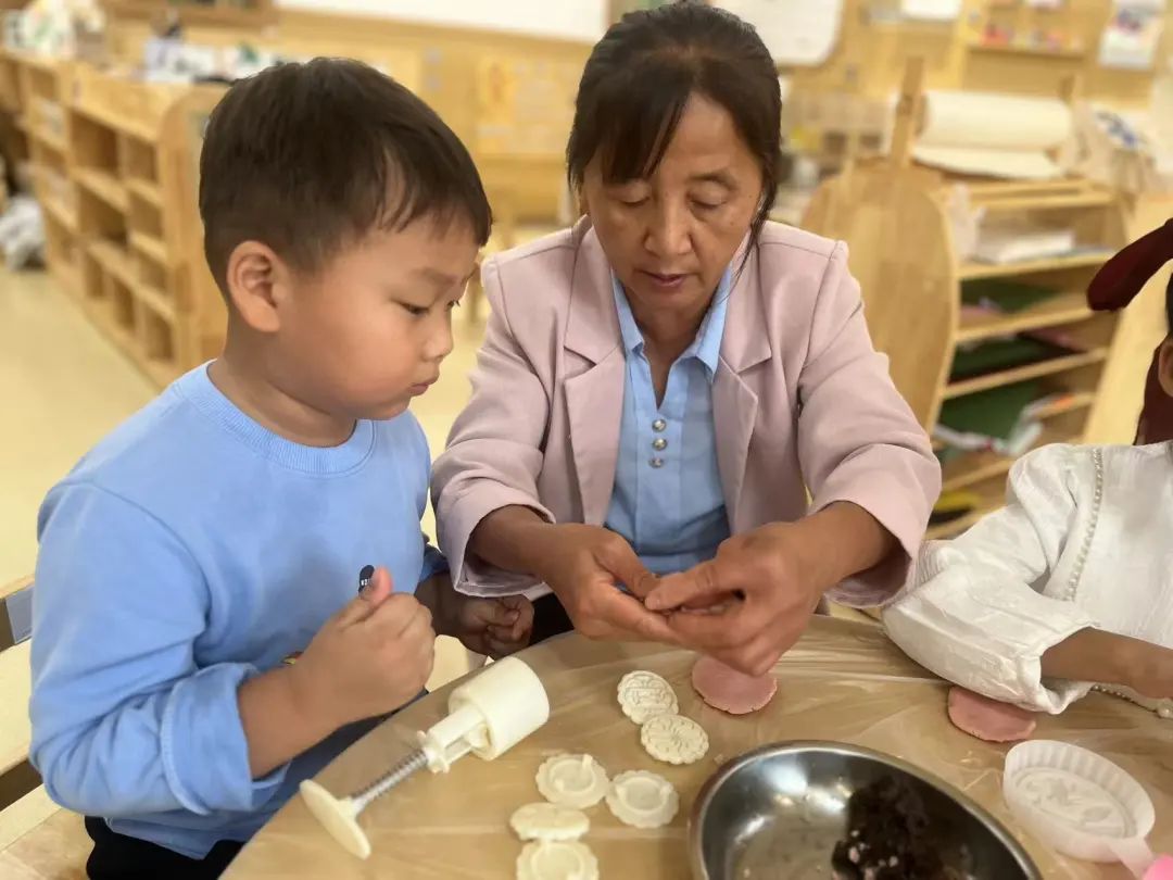 家长朋友们也积极踊跃的参与到我们的活动中,和孩子们共同了解关于中秋节的由来,一起探索做月饼的方法。