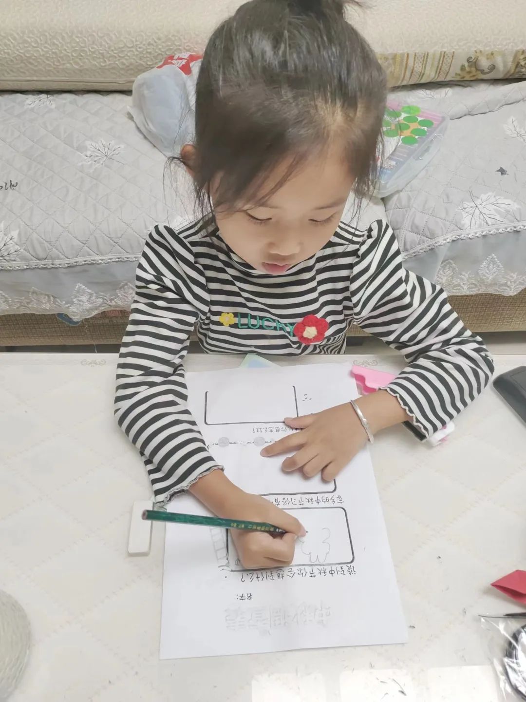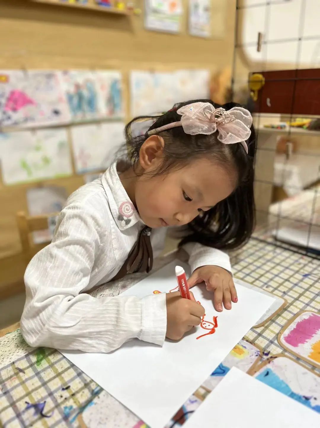 孩子们运用手中的画笔、画纸、手工制作等方式诉说自己中秋节的趣闻趣事。