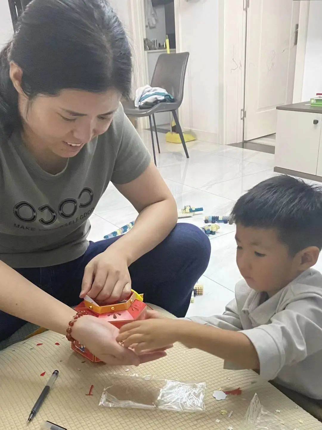 孩子们和爸爸妈妈一起制作五彩缤纷的花灯,体验手工制作的乐趣,感受佳节团圆的美满祝愿。
