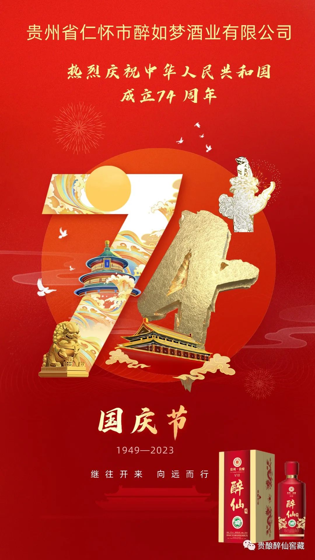 金秋十月迎国庆,举国同庆贺生辰;繁花似锦添新颜,乐曲如潮唱和平;祖国繁荣享欢乐,阖家欢乐品幸福。醉如梦酒业祝朋友们国庆快乐!