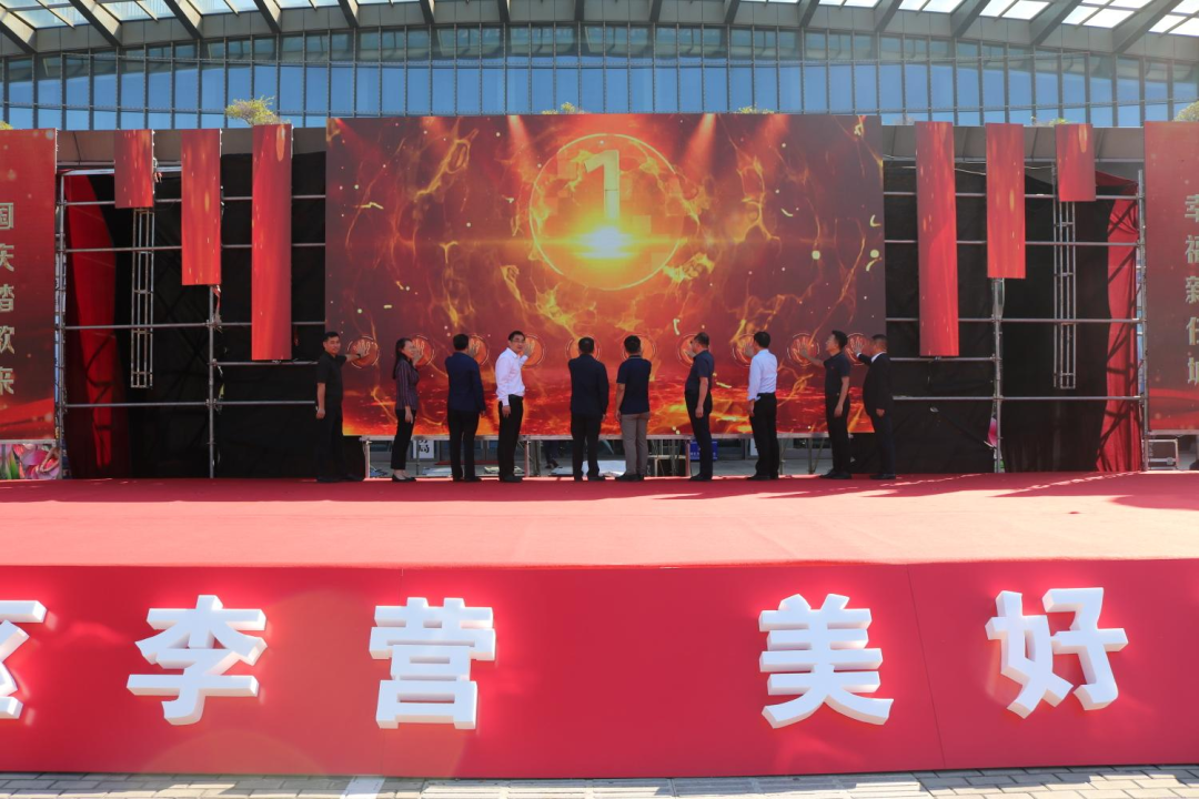 出席开幕式市区领导共同按动大屏幕,启动“宜居新区李营·美好家园任城”秋季房展家居嘉年华开幕式。