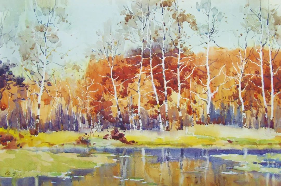 徐坚 《深秋》 51cm×78cm 水彩画
