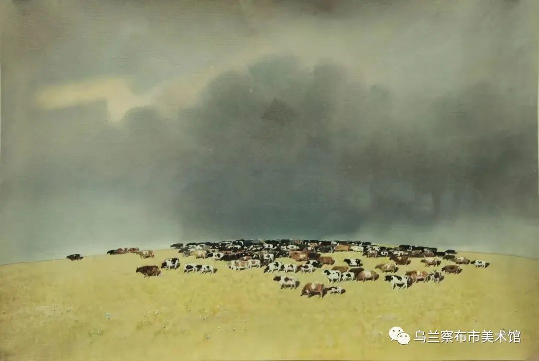 张忠《巴特尔的牛群》49.5cm × 73.6cm 水彩画