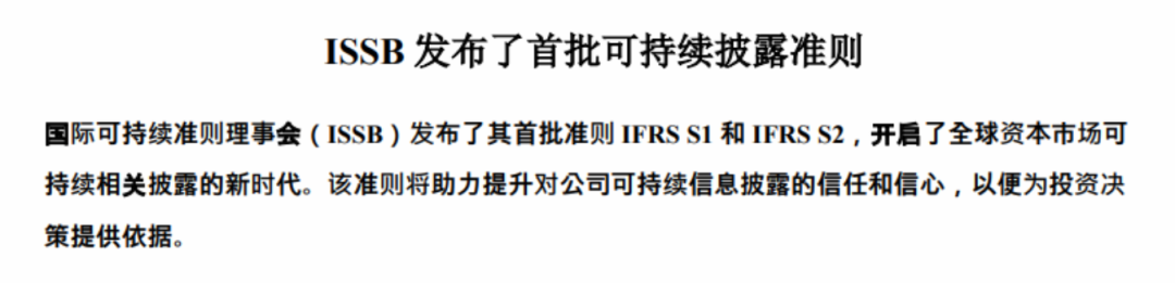 ESG(环境、社会、治理)原则已逐渐嵌入当今国际社会,引领着企业的经营战略和投资决策。上市公司和关联企业披露ESG相关信息已成为资本市场的大势所趋。近年来,各相关国际组织、发达国家政府部门以及全球主要交易所纷纷发布了与ESG披露相关的准则和标准法案。其中,对于全球影响较为显著的是国际可持续发展准则理事会(ISSB)于6月份正式发布了首批可持续信息披露准则。随后,欧盟也通过了关于企业可持续性报告的最终准则——《公司可持续发展报告指令》(Corporate Sustainability Reporting Directive,CSRD),为统一的ESG信息披露标准提供了基础。中国上市公司和各类企业也认识到,遵循ESG原则不仅有助于赢得投资者的信任,还能够降低环境和社会风险,增强企业的可持续竞争力。