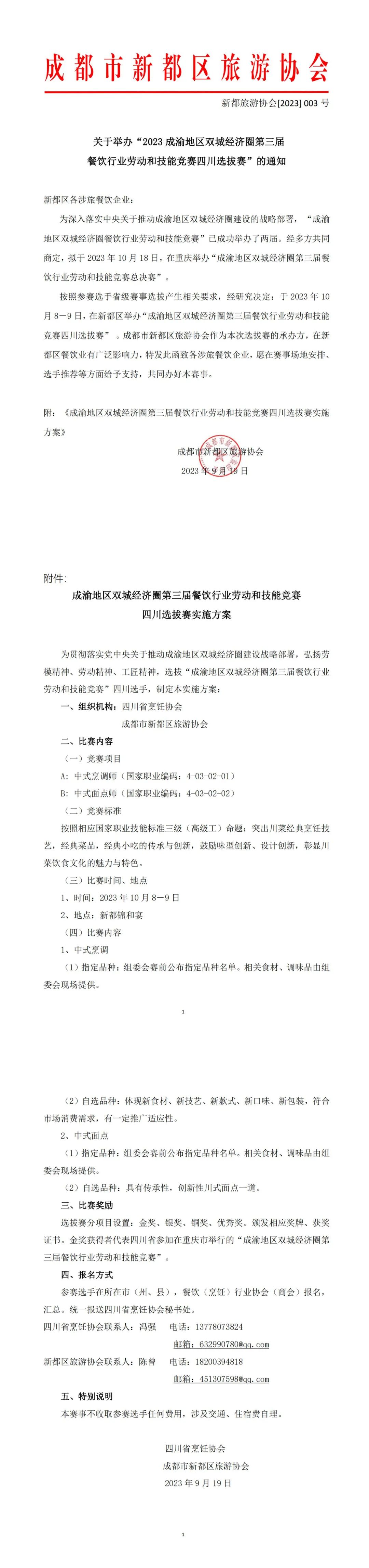 为贯彻落实党中央关于推动成渝地区双城经济圈建设战略部署,弘扬劳模精神、劳动精神、工匠精神,选拔“成渝地区双城经济圈第三届餐饮行业劳动和技能竞赛”四川选手。