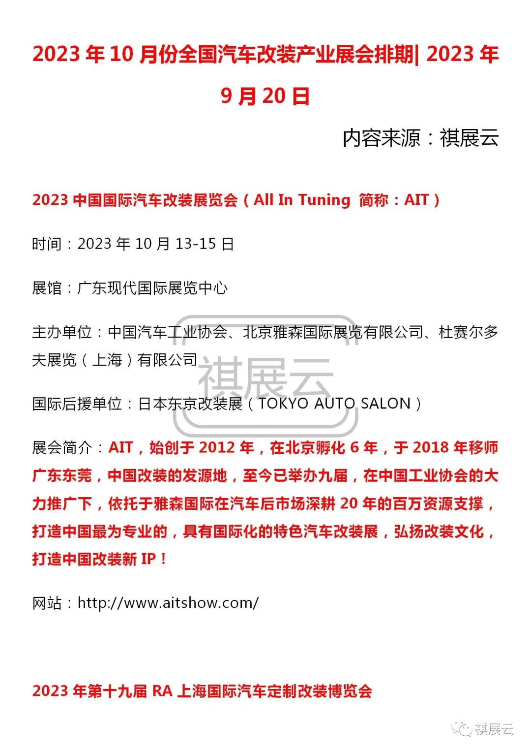2023年10月份全国汽车改装产业展会排期| 2023年9月20日