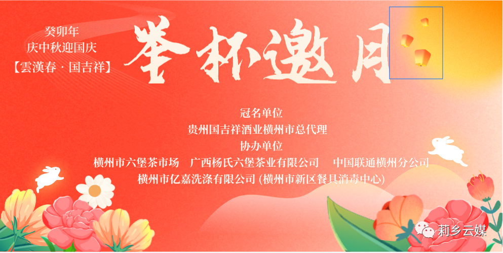 2023年9月29日(农历八月十五),横州市六堡茶市场举办“庆中秋迎国庆”举杯邀月中秋之夜活动。活动得到贵州国吉祥酒业横州总代理的冠名支持。同时得到杨氏六堡茶,中国联通横州分公司,横州市亿嘉洗涤有限公司,横州市新区餐具消毒中心以及横州市六堡茶市场各商户等的大力支持。