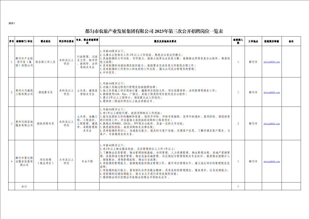附件1:都匀市农旅产业发展集团有限公司2023年第三次公开招聘岗位一览表.pdf