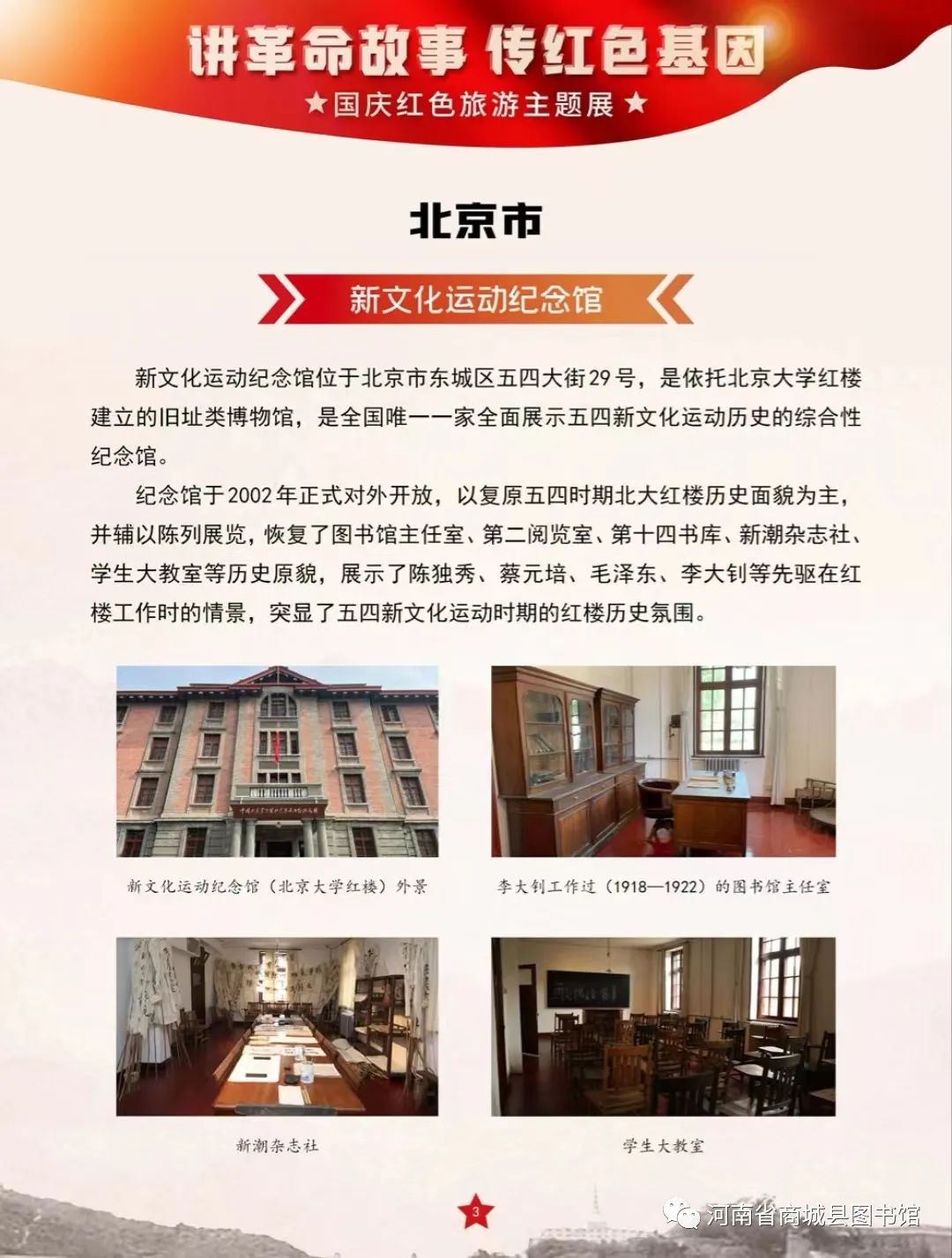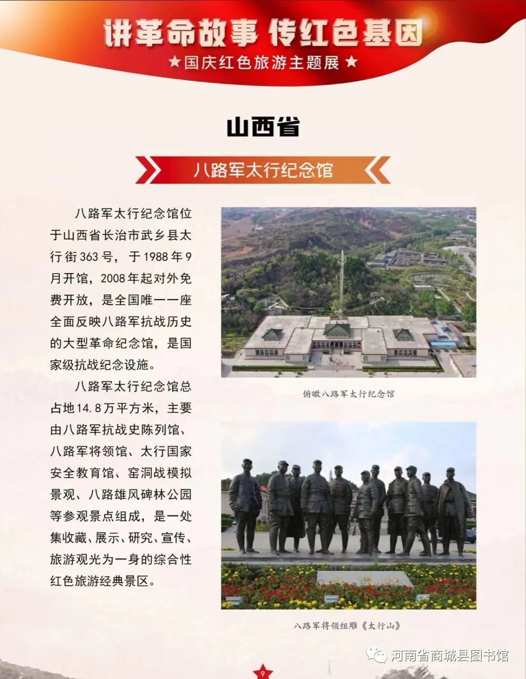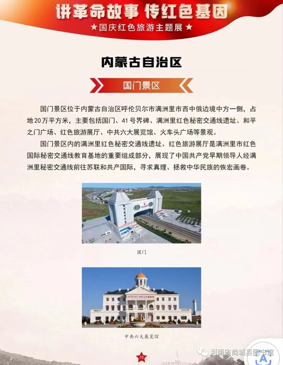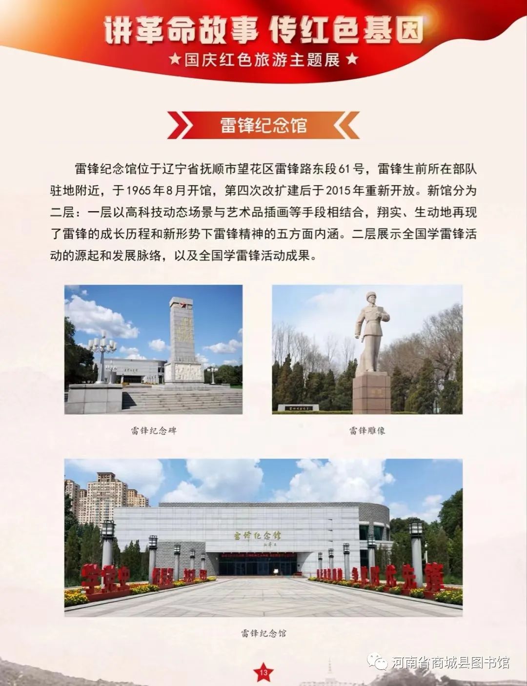 红色旅游,主要是指以中国共产党领导人民在革命和战争时期建树丰功伟绩所形成的纪念地、标志物为载体,以其所承载的革命历史、革命事迹和革命精神为内涵,组织接待旅游者开展缅怀学习、参观游览的主题性旅游活动。中国共产党带领人民前赴后继、砥砺奋进,创造了伟大历史,铸就了伟大精神,形成了宝贵经验,留下了许多革命文物及故事、战斗遗址和纪念场馆。这些弥足珍贵的红色资源承载着我党我军辉煌壮阔的历史记忆,蕴藏着我党我军发展壮大的红色基因,是开展党史学习教育的红色教材、重要阵地和生动课堂。2022年10月16日,习近平总书记在党的二十大报告中指出:"社会主义核心价值观是凝聚人心、汇聚民力的强大力量。弘扬以伟大建党精神为源头的中国共产党人精神谱系,用好红色资源,深入开展社会主义核心价值观宣传教育,深化爱国主义、集体主义、社会主义教育,着力培养担当民族复兴大任的时代新人。"适逢国庆节假期,为更好地利用红色资源、发扬红色传统、传承红色基因,更好地用历史成就激励人、用历史传统教育人、用历史经验启迪人,为焕发思想政治工作活力提供丰厚滋养,我们特别策划了"讲革命故事传红色基因——国庆红色旅游主题展",通过丰富的图文内容,为大家推介全国各地的部分红色旅游景区(景点),重温红色历程.