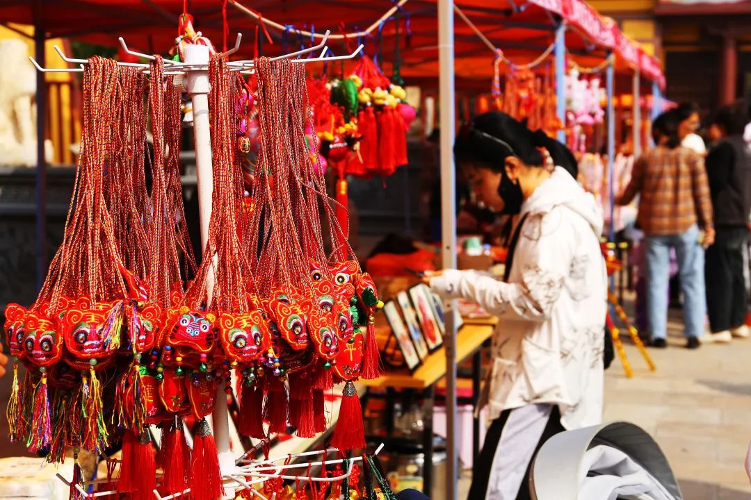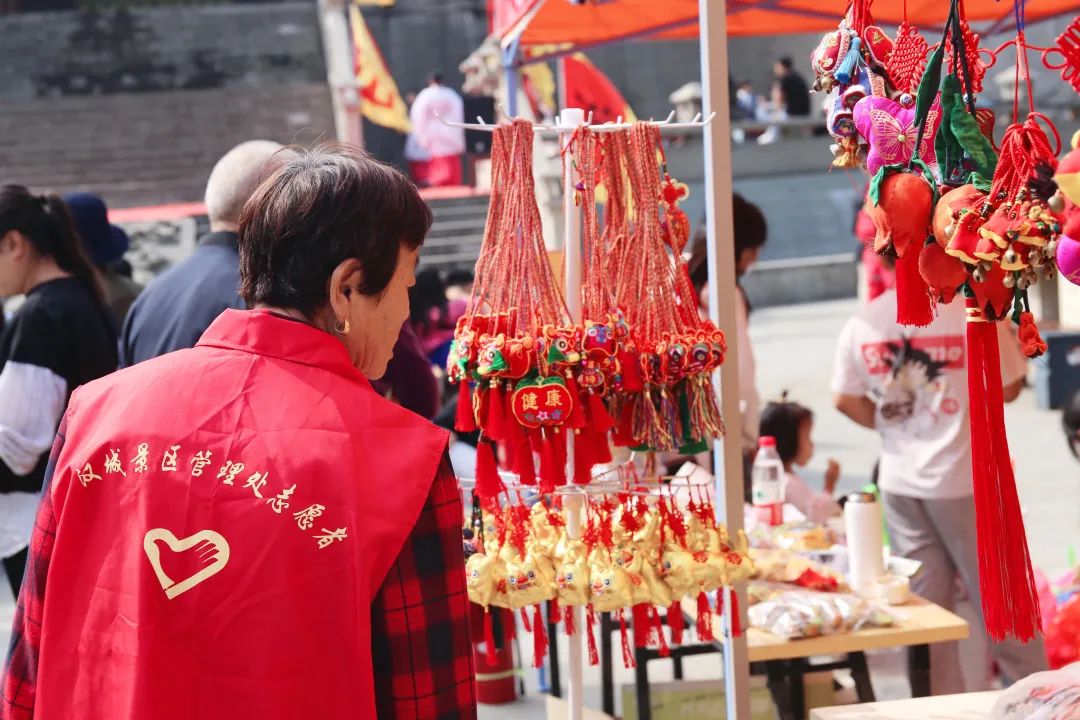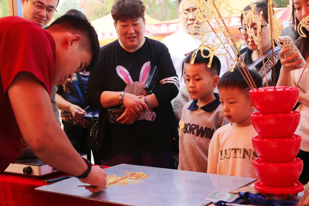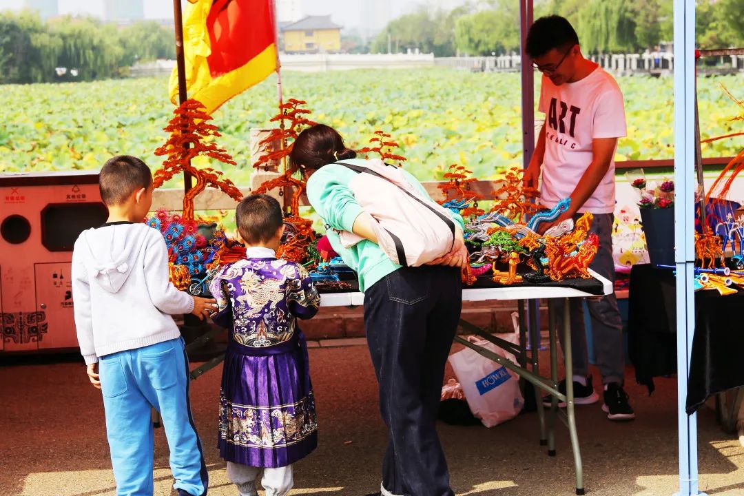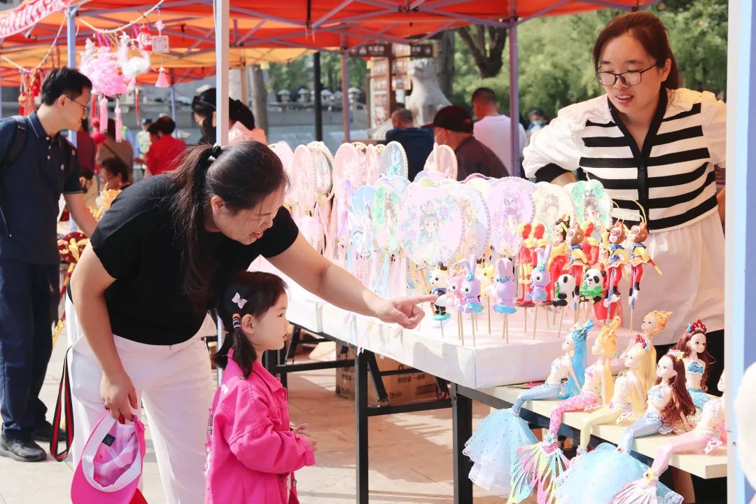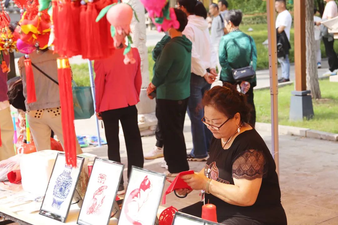 台上节目精彩纷呈,台下展位中的商品更是琳琅满目。指掌画、康氏香包、鹿记元小炒酱、汉宫茶杯等具有沛县地域特色的手工艺品、特色食品、文创产品,吸引了众多市民驻足欣赏、购买。