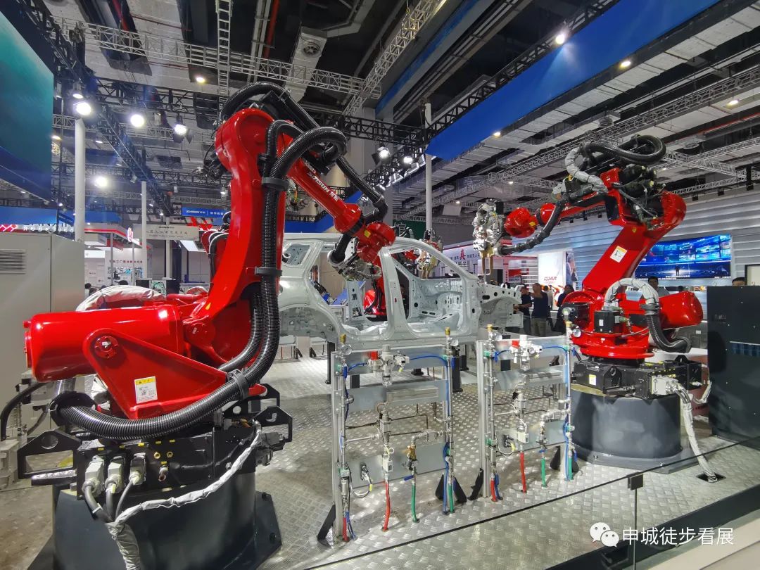 机器人展馆人流最多最为热闹。全球四大机器人厂商ABB(瑞士)、Fanuc(日本)、安川电机(日本)、Kuka AG (德国)都来了。在机器人制造领域国内的新松、钱江、华中数控、埃斯顿自动化、新时达机器人、图灵智造等企业已经发展很快了,随着中国工业机器人新安装数量自2019年以来连续数年名列世界第一,相信中国国产机器人一定大有可为。