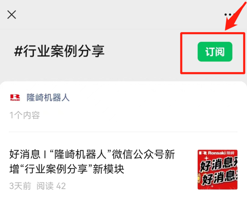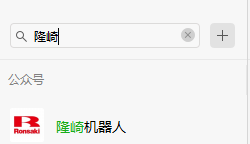 第一步 微信搜索“隆崎”,就可见到“隆崎机器人”微信公众号,点击进入公众号