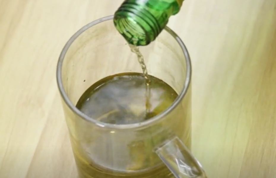 第三个方法,使用茶叶水进行辨别。首先我们准备一个玻璃杯,把白酒倒进杯子里边,然后把茶叶水倒进白酒里边,倒进去的时候我们可以把这个玻璃瓶拿起来,看一下白酒的颜色有没有发生变化。