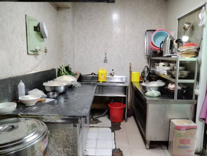 1、后厨卫生脏乱差,地面油污未清理,操作台面未及时清洗。