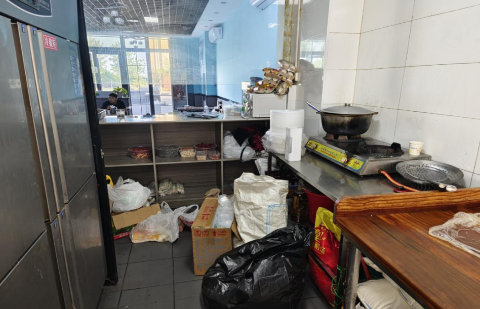 1、后厨操作空间脏乱,油污未及时清洁。