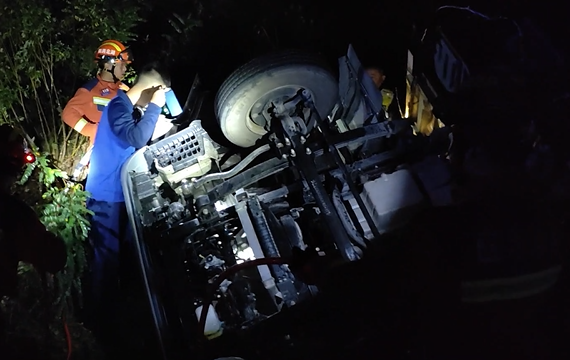 据了解,由于凌晨持续降雨,视线不佳,地面湿滑,司机一个不慎便擦上高速护栏,情急之下踩下刹车,不料车身发生侧翻。