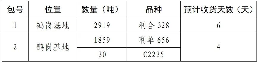 销售的玉米种植面积7212亩,品种为“利合328、利单656、C2235”,预计总产量约4808吨(具体以实际称量为准),共分为2包。采取“地头交货、测水计价、不扣杂质”的销售方式。