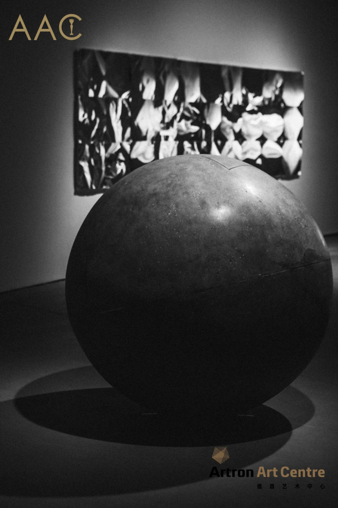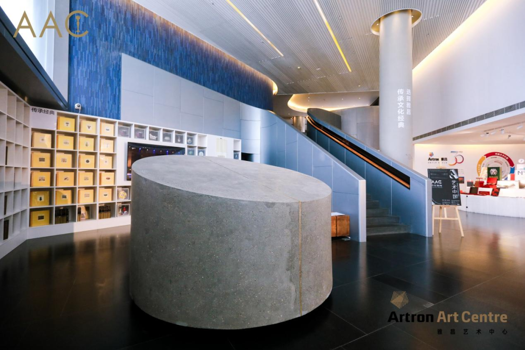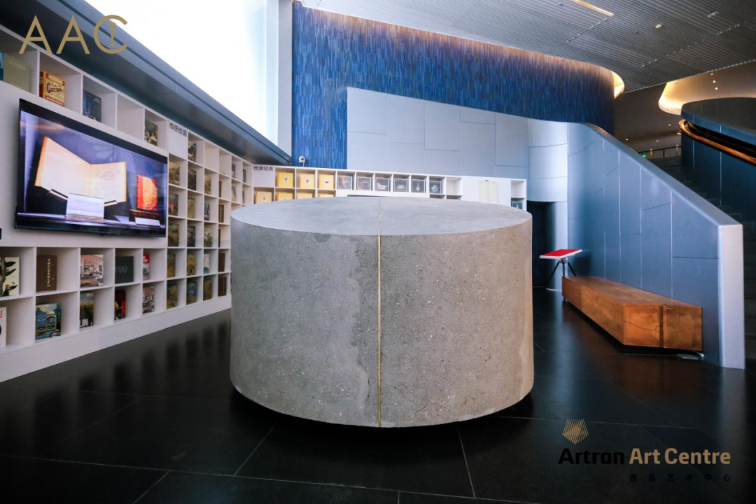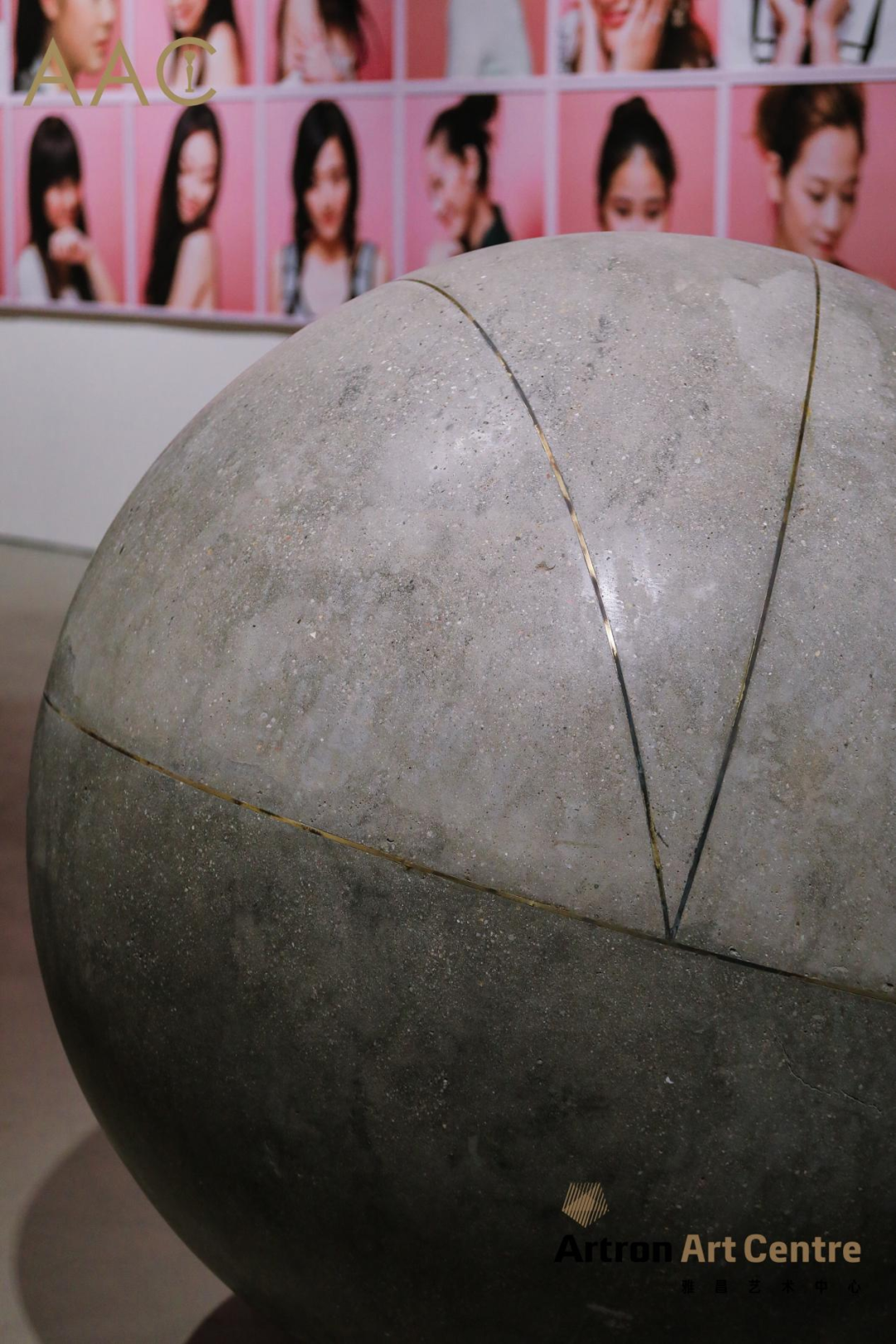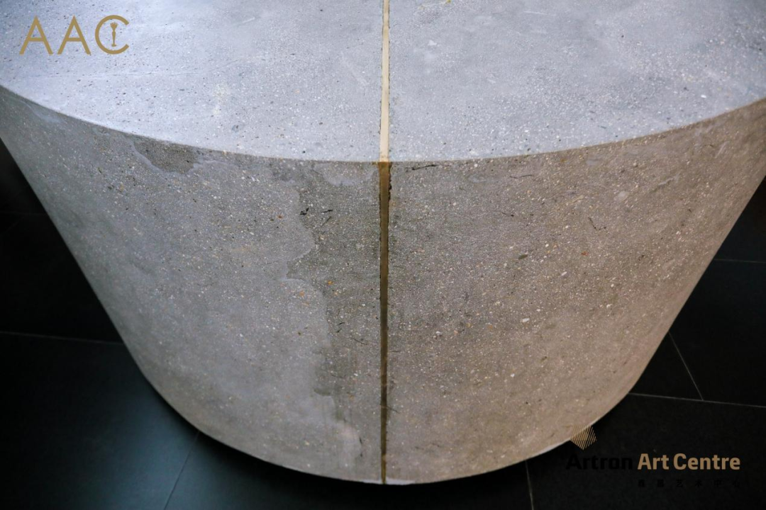 戴耘:这次参展的作品都是去年个展水磨石系列里面的作品,一个是一楼左手边那个直径大概 2 米多的圆柱,上面切了有一个斜面,上面有像水磨石一样的的铜线。还有一个是在美术馆里那个大的圆球。