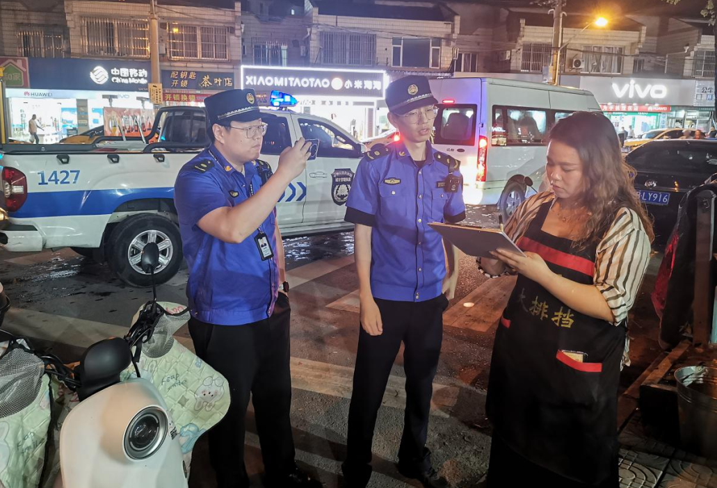 中队坚持常态化夜间整治行动,针对流动食品摊贩夜排档和部分商业街餐饮商铺跨门经营扰民问题,采取定岗定时定责巡查劝导整改和集中部分网格管理执法力量执法处罚相结合的方式,加强“路长制”平时管理到位和“突击队”战时处罚到位的“平战结合”“管执联动”,及时巡查制止和管理处罚违规设摊当事人和涉事商铺。对于经常性扰民的流动设摊点位,城管部门采取责令整改、行政处罚等措施,抓早抓小严厉打击违法违规行为,切实保证市民群众有一个温馨、安静的夜间环境。