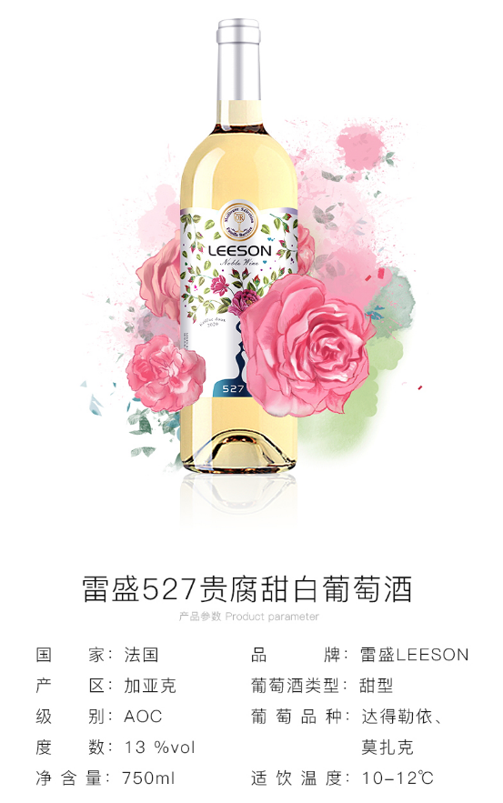 葡萄酒的酿造在世界范围内已经有很长的历史,法国有连续一千多年的酿酒历史,意大利则更长一些。悠长的历史让他们完善了葡萄酒酿造的方方面面。在酿酒理念以及酿酒人才的实力方面先进很多。尤其是在旧世界的庄园,或是新世界中比较尊重传统的酒园,酿造工艺非常成熟。雷盛的这款 法国贵腐甜白葡萄酒 就来自 法国古老的葡萄种植区域之一加亚 克(Gaillac),在古罗马时期甚至更早的时期,该产区就已经有葡萄种植的历史记录了。采用达得勒依(Lendel'El)和莫扎克(Mauzac)葡萄品种酿造而成,口感厚重、强劲,带有丰富的水果香气,余味悠长。贵腐酒是在一次美丽的意外中诞生的珍贵酒液,用附着了贵腐菌的葡萄酿成的葡萄酒反而口感更惊人,口感更浓郁,原料可遇不可求,而且产量很低,所以每一滴贵腐酒都弥足珍贵。雷盛(LEESON)品牌系列葡萄酒有幸邀请 著名导演张纪中先生担任品牌代言人 ,为雷盛品牌赋予更加深厚的文化底蕴。雷盛品种丰富,从世界各地采购品牌葡萄酒,拥有各种类型和价格区间的知名葡萄酒,能满足不同顾客的购物需求。葡萄酒因为等级较多、产区多、酒庄多,各种价位不易判定和识别,雷盛红酒按照产品不同标号进行产品分类,把每款酒用数字标号或字母+数字做明确标记,并对产品进行分类。针对不同产品特点做说明,并推荐使用场景,轻松找到适合自己使用场景的葡萄酒。针对种类繁多、又来自各个不同产区的葡萄酒,雷盛红酒把选择权交给了消费者,通过在各地开展盲品会,让消费者和专业葡萄酒爱好者选择最喜欢畅饮口感,选出让消费者喜欢的产品。基于多个国家产品的全球优选,让雷盛葡萄酒从全球供应链角度进行优化,形成了一套完整高效的供应链系统,采用云仓一件代发,线下酒庄体验,线上购物的方式让消费者更实惠购酒。官网品牌红酒最便宜的698一瓶,平台做活动添加客服微信,免费注册会员最低200一箱,进口红酒市场价698一瓶,最低 200得一箱!