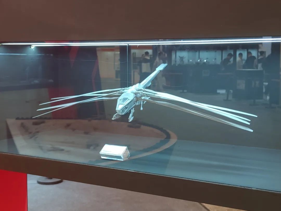 右侧的展窗则展示了正在开发中的1/72 厄崔迪扑翼机样品,扑翼机庞大的翼展颇具气势。