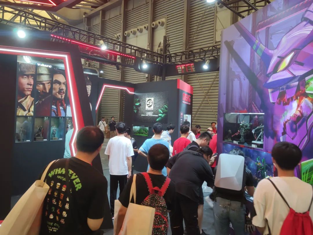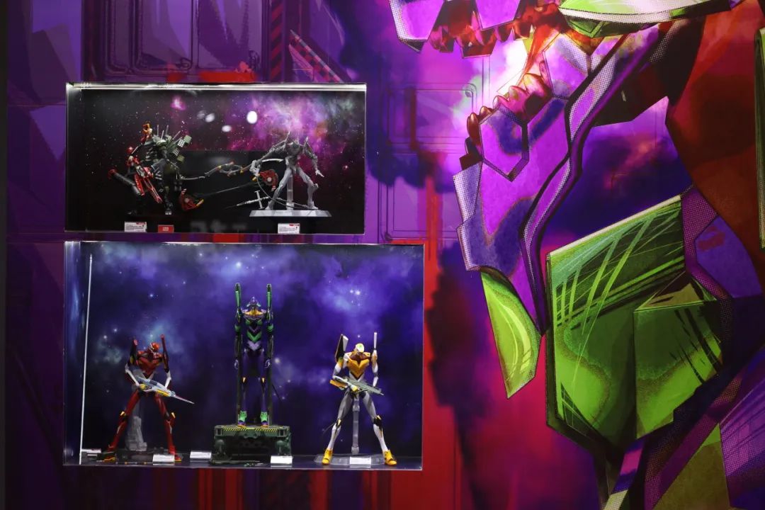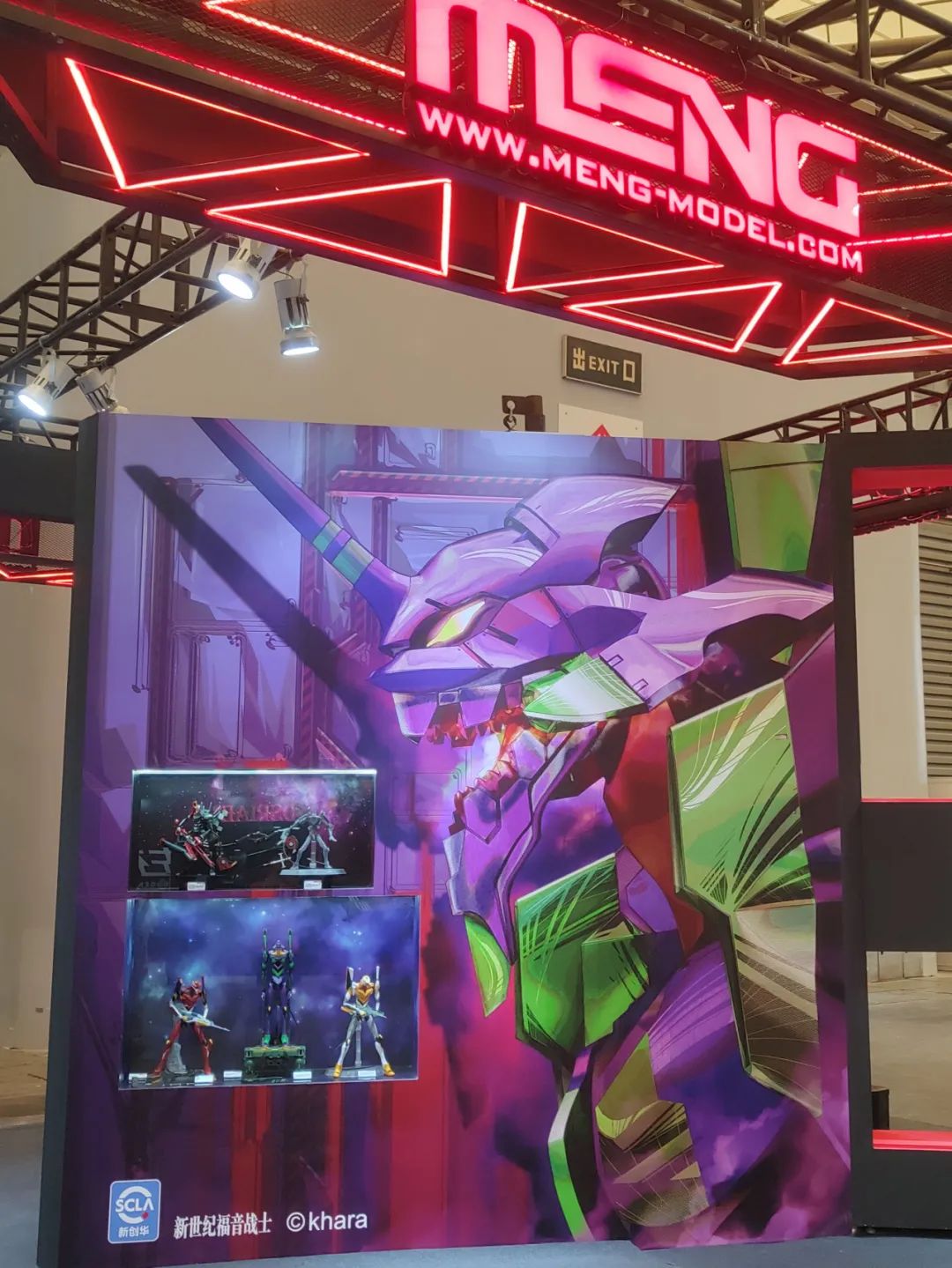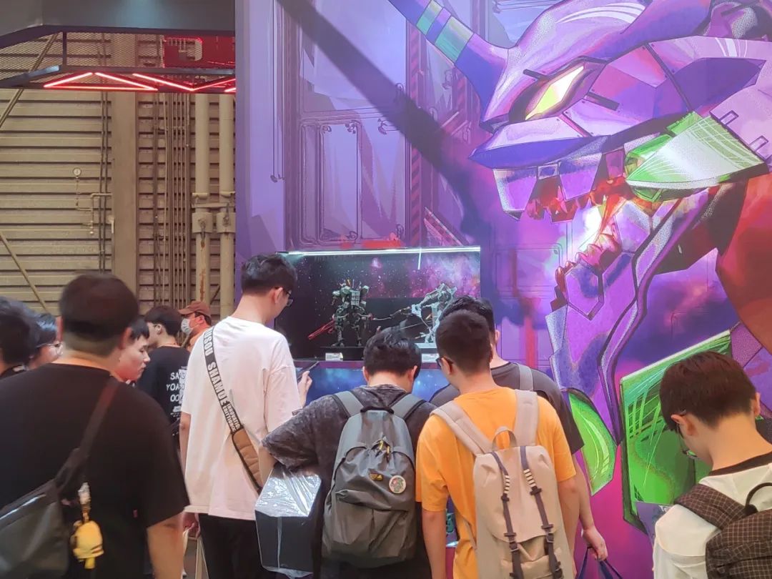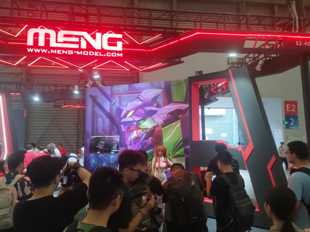 接下来是MENG的EVA展区,本次展出了开发中的MECHA-005M EVA改八号机γ白模以及以往的EVA系列产品。颇具视觉效果的展墙非常吸睛。