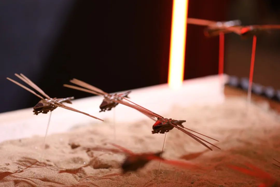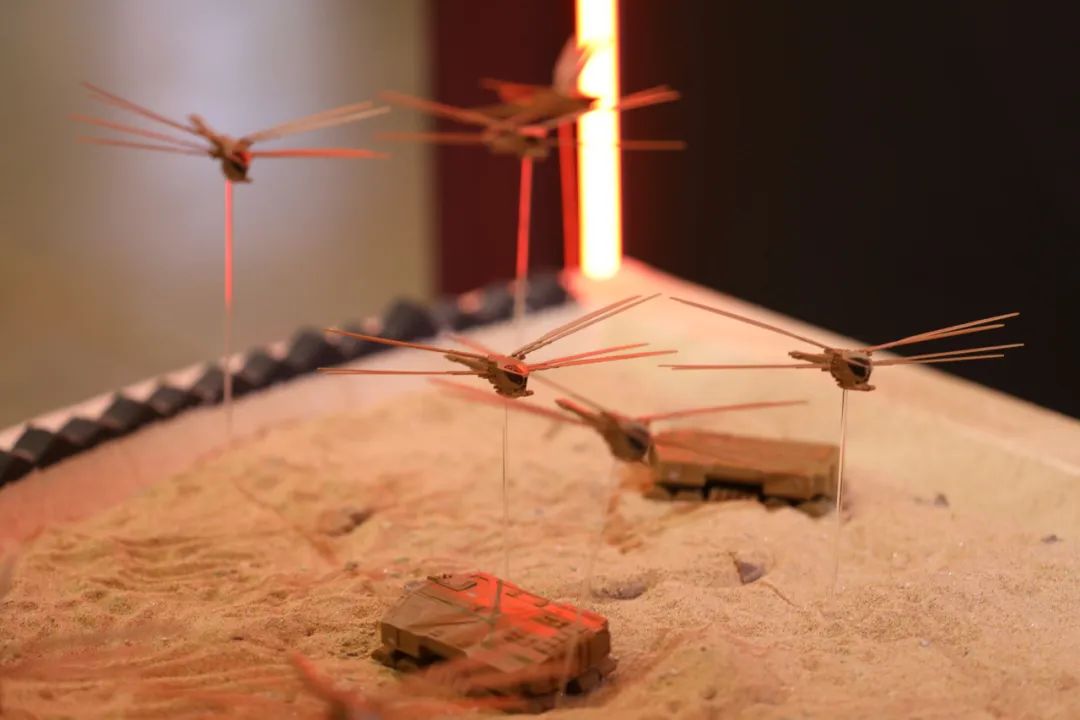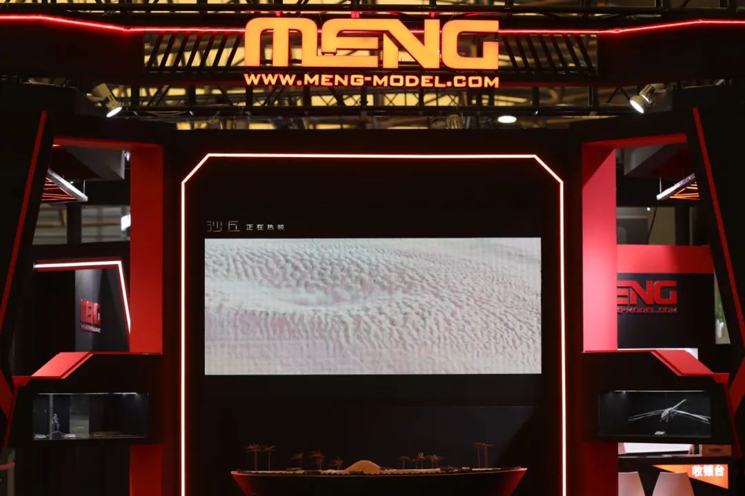 本次展会首次放出了由传奇影业授权的全新科幻产品——《沙丘》系列!为了尽可能展现原著中浩瀚庞大的场景,我们搭建了巨大的沙盘场景来展示MMS-011厄崔迪扑翼机、MMS-013 香料开采车以及MMS-014哈克南扑翼机,在这片浩瀚的沙漠中,喷出一股股沙柱的香料开采车和拍打着翅膀穿越漫漫黄沙的扑翼机都是如此地吸引人。