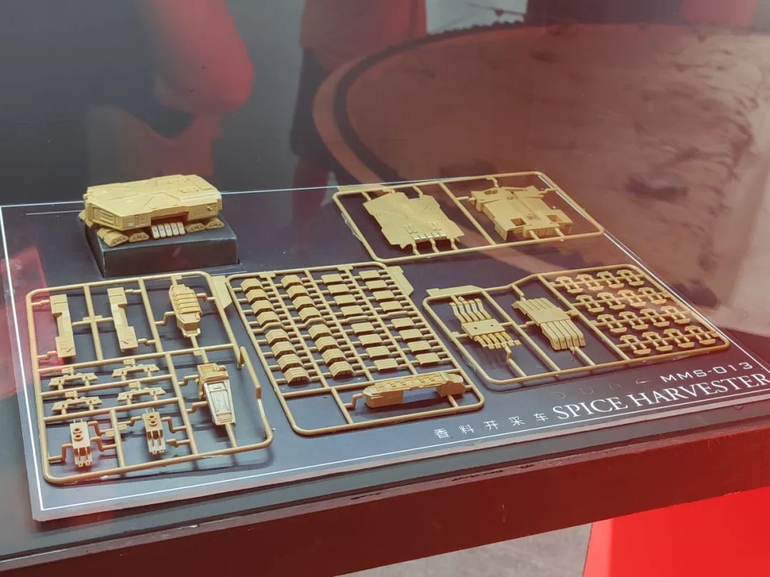 左侧的展窗则展示了开发中的保罗·厄崔迪及菲德-罗萨·哈克南的可动人偶,同时还展出了MMS-013 香料开采车的板件。