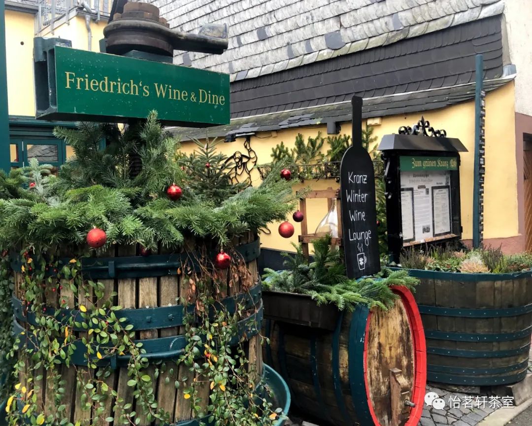 吕德斯海姆的葡萄酒里蕴含着很多的历史故事,当时的贵族把葡萄酒当饮料,几乎不喝水,他们认为葡萄酒比水更有魔力,从公元1475年开始,“雷司令”白葡萄酒就已经享有很高的荣誉了。莱茵河地区的葡萄种植技术据说是2000年前古罗马人在这里屯垦戍边时带过来的,他们同时也把葡萄酒酿造技术带到了这里,日耳曼人欣然接受了这种文化,使这一传统一直延续到现在。小镇内的许多酒庄,有的至今还在使用几百年前祖辈留下的储藏葡萄酒的地窖。酒庄基本还是保存着前店后场的风格,门前挂着自家的招牌和一个硕大的花环,表明在这里可以品尝到酒庄主人家庭酿造的新鲜葡萄酒。