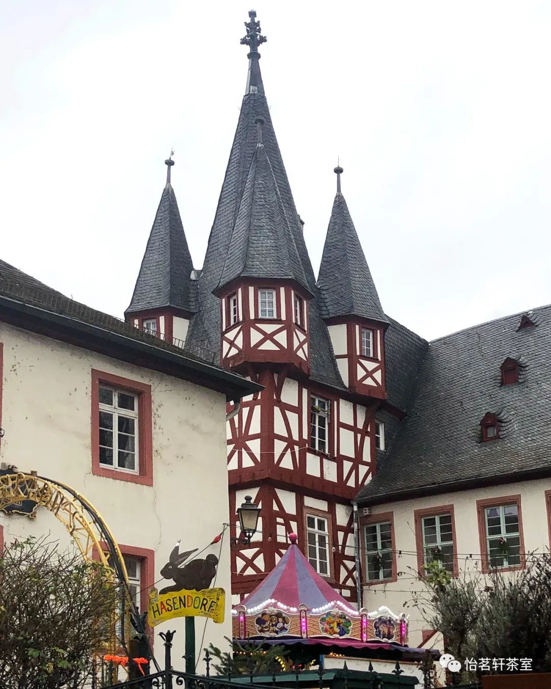 从山上俯瞰、莱茵河的景色尽收眼底,很有气吞山河的感觉。船只在航道上繁忙地穿梭,风光如画的村庄掩映在葡萄园中,壮美的如同像一幅幅油画。吕德斯海姆满城重重叠叠的红色屋顶和绿树掩隐的街道,浸漫着花香,闪烁着圣诞的灯光。葡萄园时隐时现在朦胧的雨雾之中,风光如画的村庄掩映在葡萄园中,在教堂和城堡的周围,鲜花点缀着房舍、泉眼和酒窖。雨雾给小镇镀上了一层神秘与浪漫,更觉温柔。晚风浸揉着葡萄酒的香醇,小镇沉醉在葡萄酒的甜梦里,游人沉醉在她的怀里,聆听着一个古老的关于“雷司令”的故事。