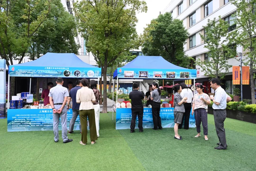 漕河泾街道党工委副书记吴晨晖、办事处副主任张建来到现场参与活动,详细询问商品种类、销售价格等情况。