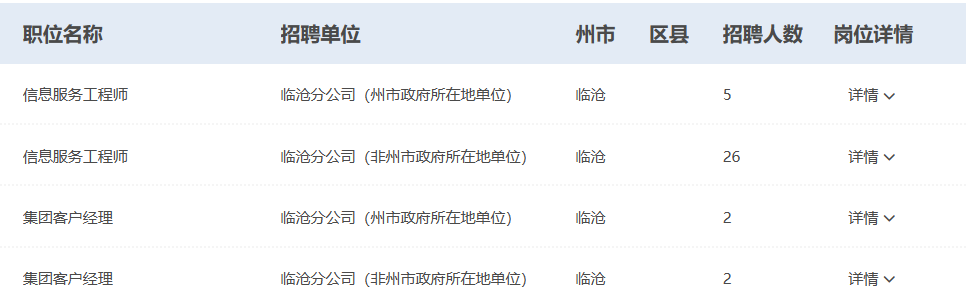 招聘单位:临沧分公司(州市政府所在地单位)