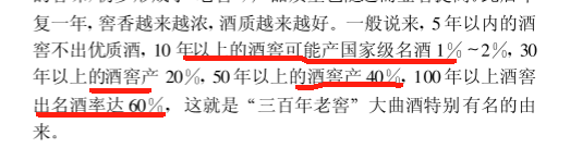 窖池的年龄,决定了其优级酒的出酒率,20年以内新窖一般产不出优级品好酒,50年以上的才能产出20%-30%的优级品好酒,百年以上老窖优级品率更高。