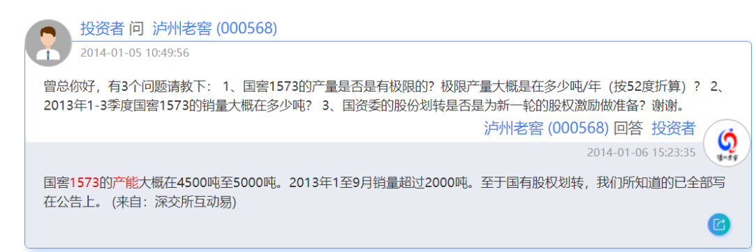 5、泸州老窖年报和投资者问答