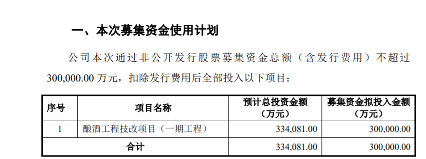2016年泸州老窖通过非公开发行股票,进行酿酒工程技改,募集资金30亿。